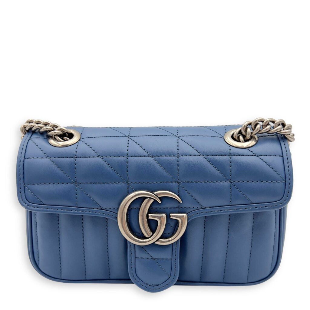 GG Marmont Shoulder Bag Blue in Calfskin, Ruthenium hardware