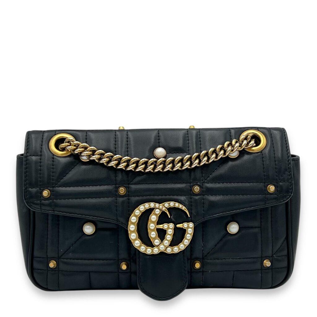GG Marmont Shoulder Bag Small Black in Calfskin, black hardware