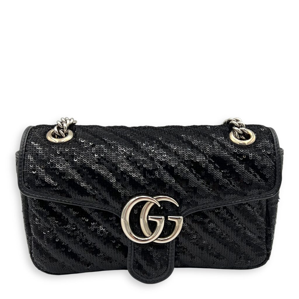 GG Marmont Shoulder Bag Black in Sequins, Silver hardware