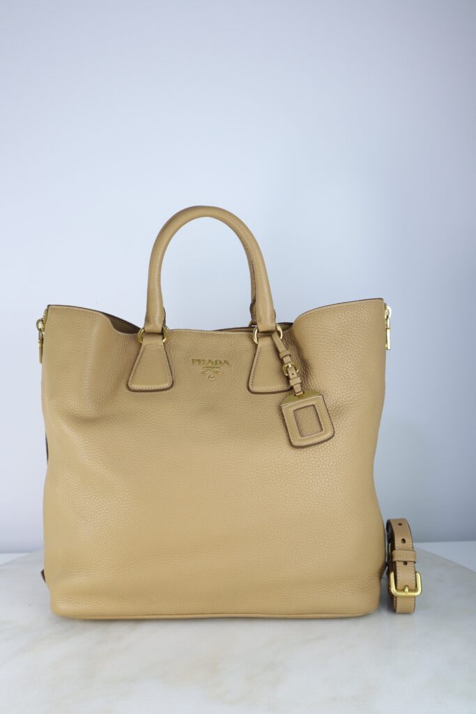 Prada Beige Vitello Daino Tote Bag W/ Strap