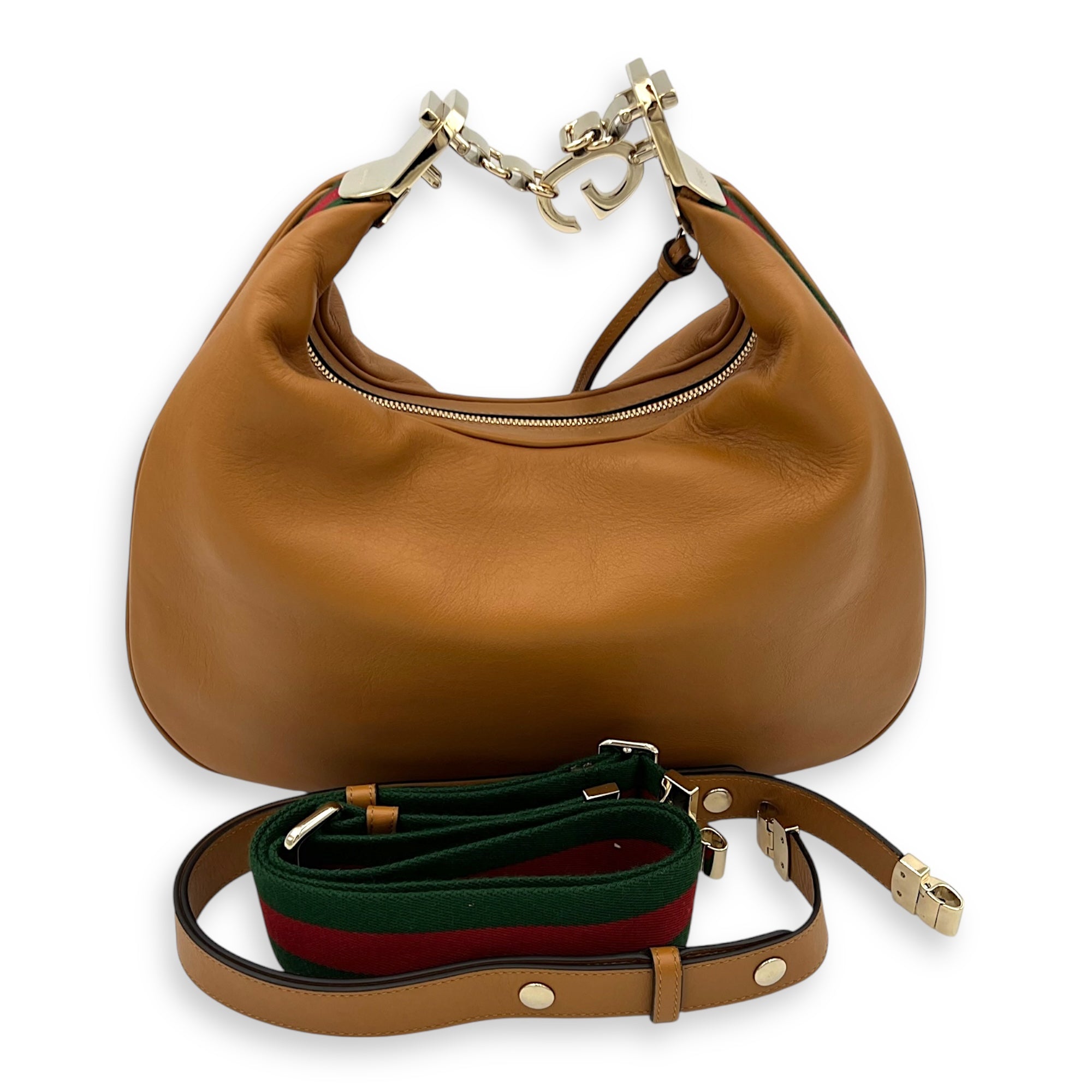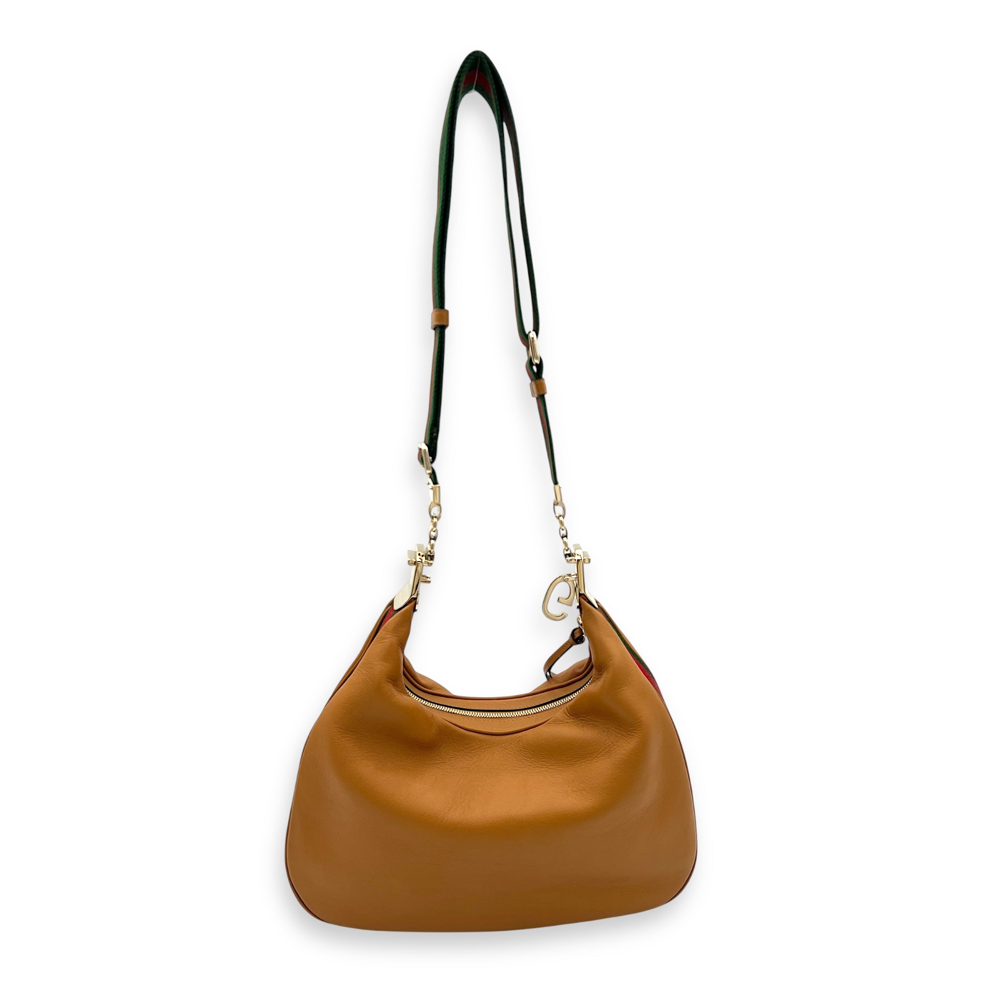 Attache Shoulder Bag Brown in Calfskin, Gold hardware