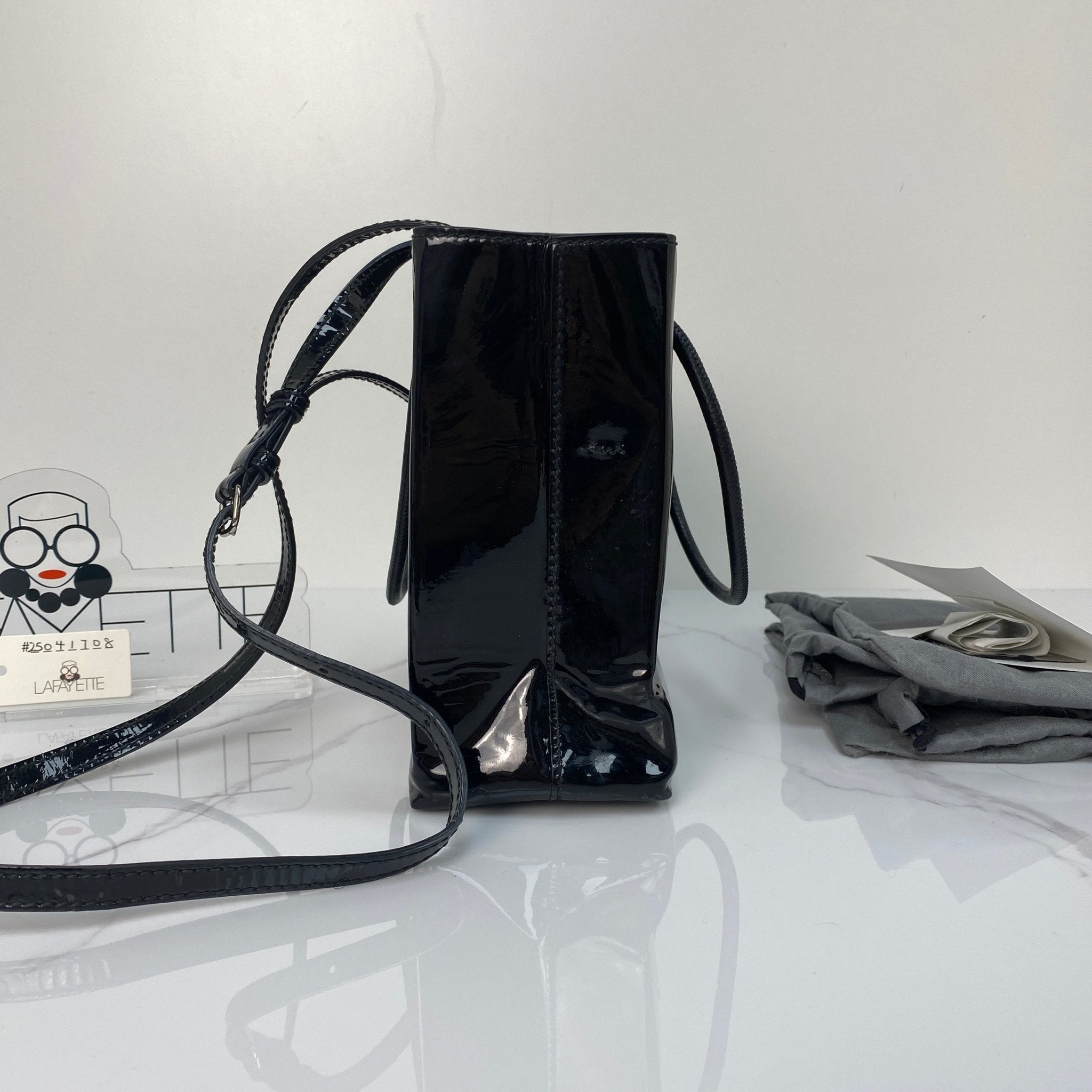 The Balenciaga Logo Shopping Tote in black patent leather is the definition of downtown cool. Sharp, glossy, and endlessly functional—it elevates streetwear, suiting, and everything in between.