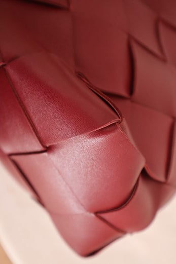 Bottega Veneta Burgundy Intrecciato Clasp Bucket Bag