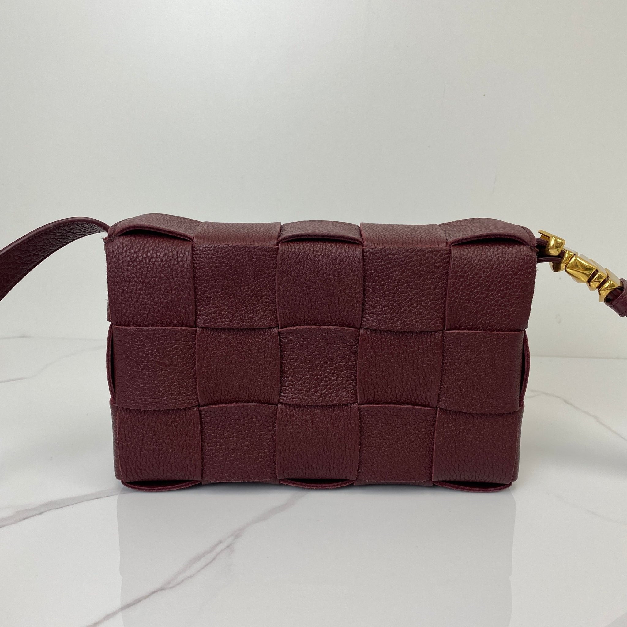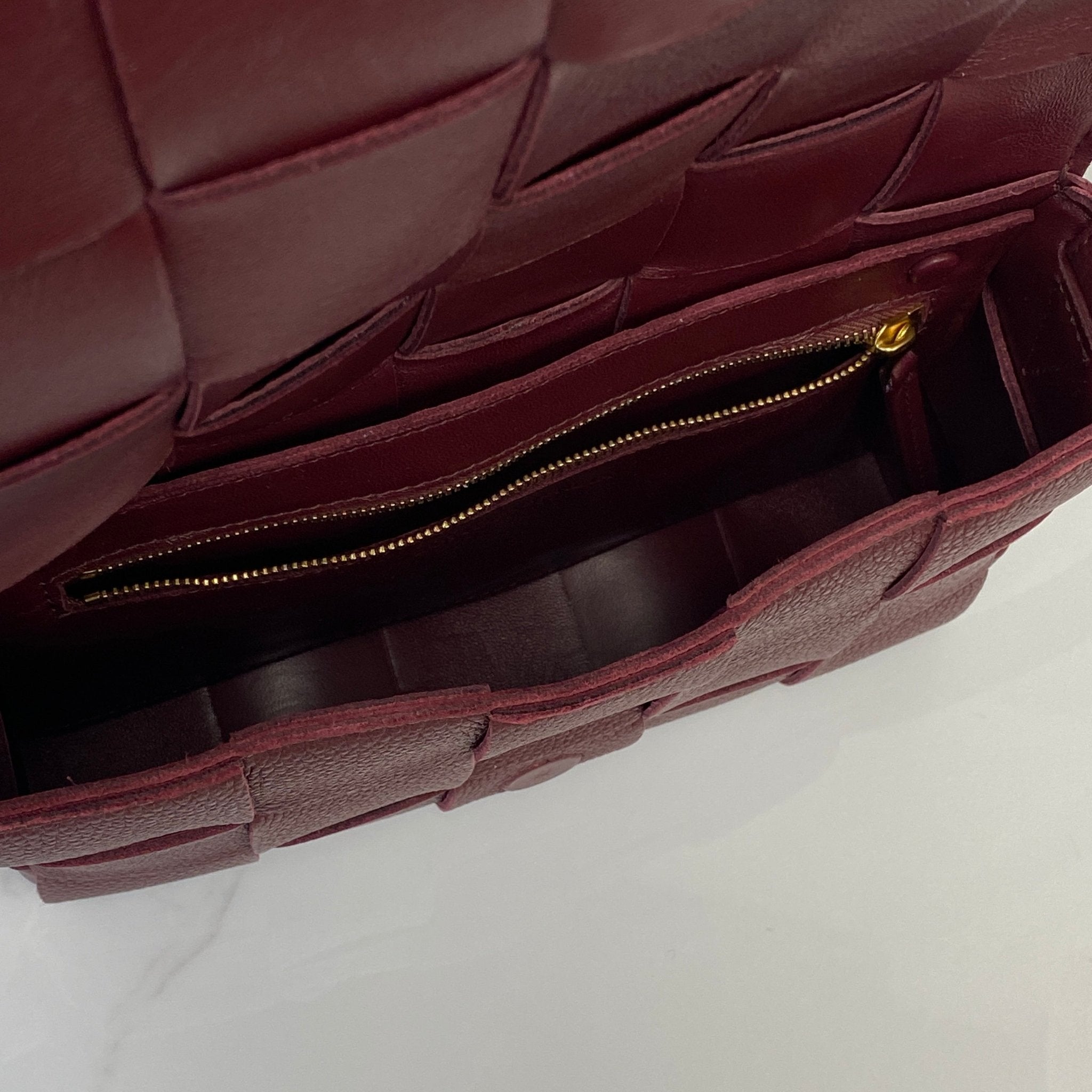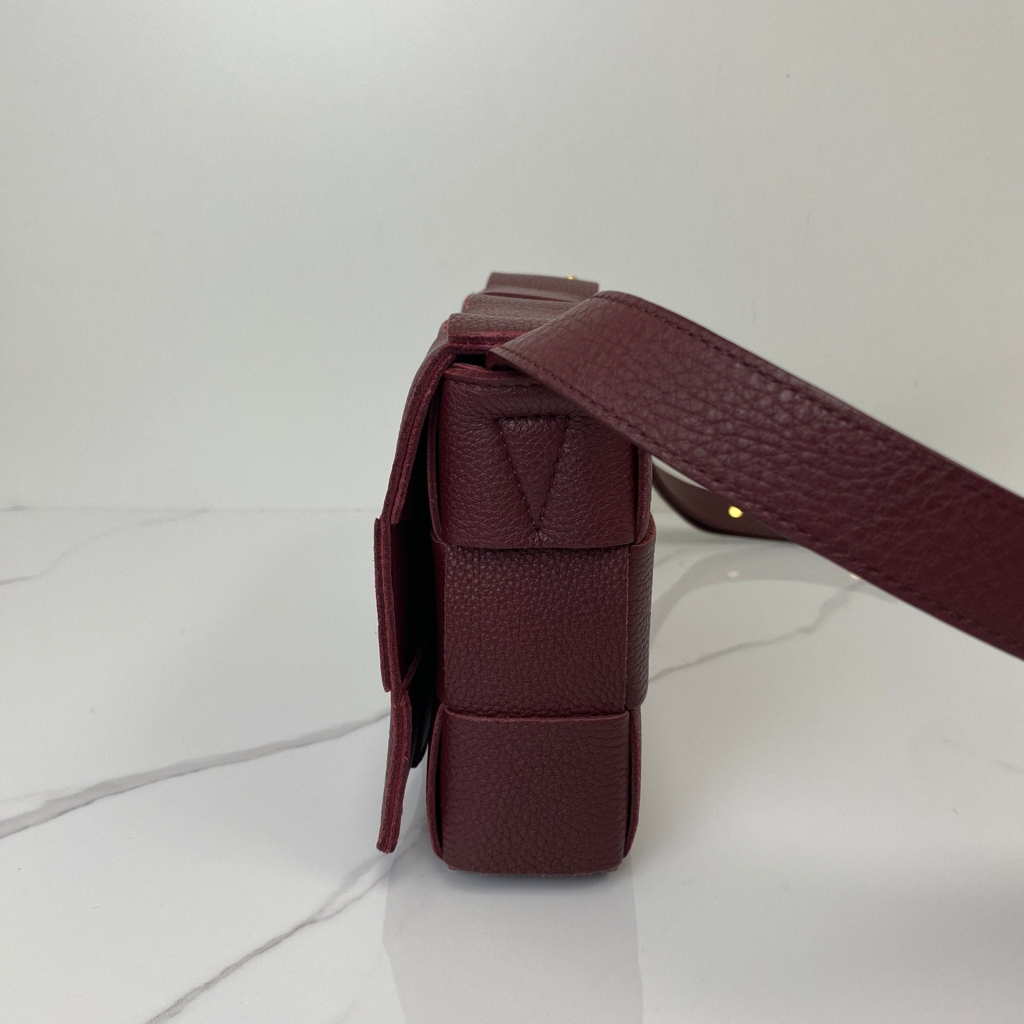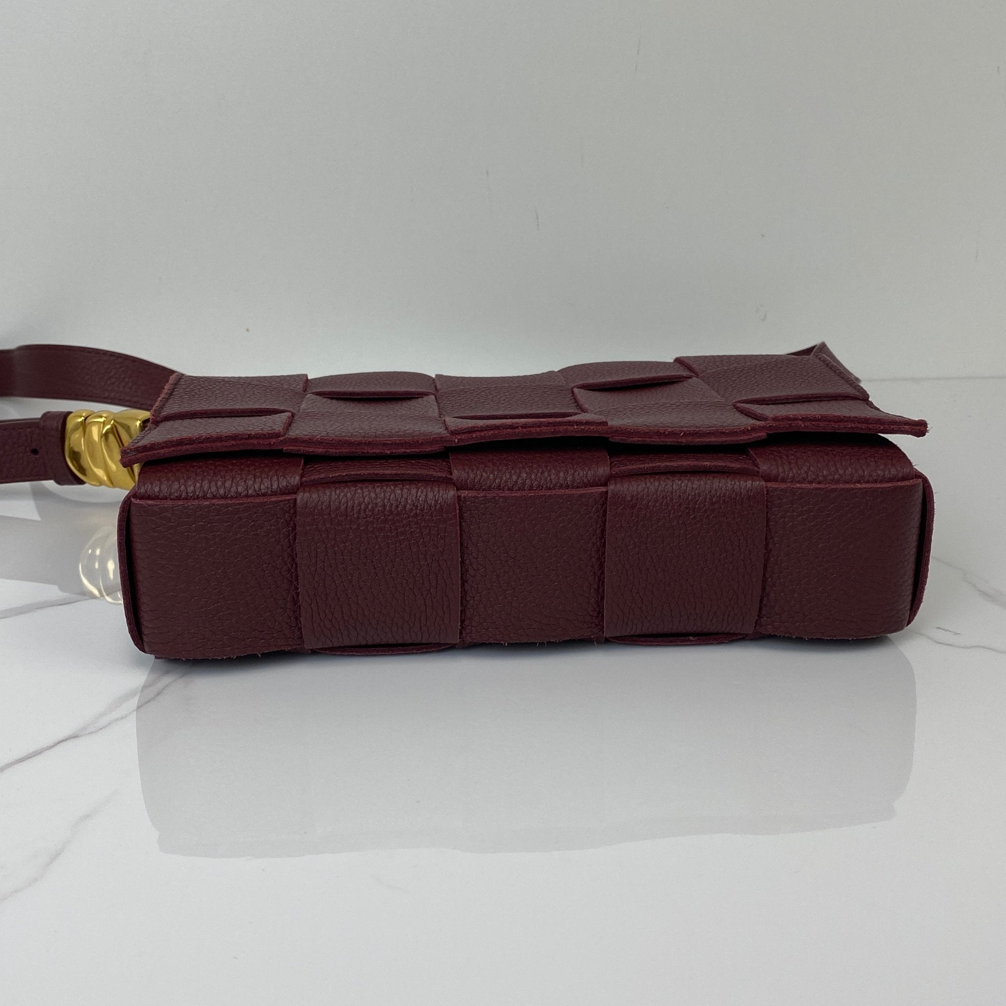 A masterpiece of craftsmanship. The Bottega Veneta Cassette in Barolo lambskin features the house’s signature oversized intrecciato weave, a plush texture, and a bold yet timeless color. An iconic piece for those who appreciate artistry in every detail.