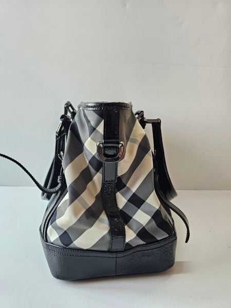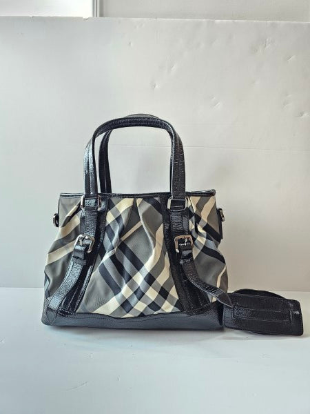 • Material: Black/Grey Beat Check Nylon and Black Patent Leather