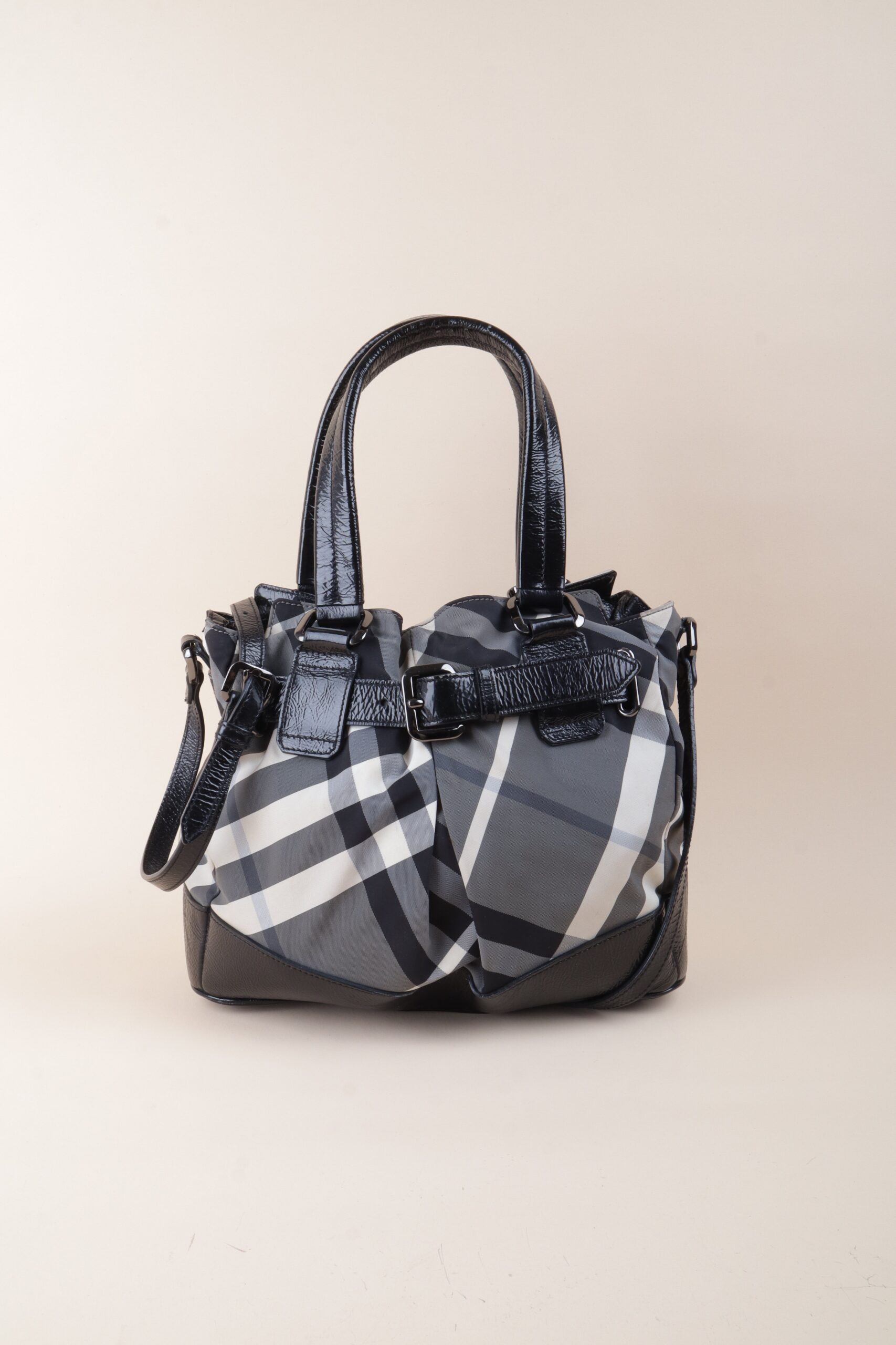 Burberry Bicolor Beat Check Nylon Shoulder Bag with Strap