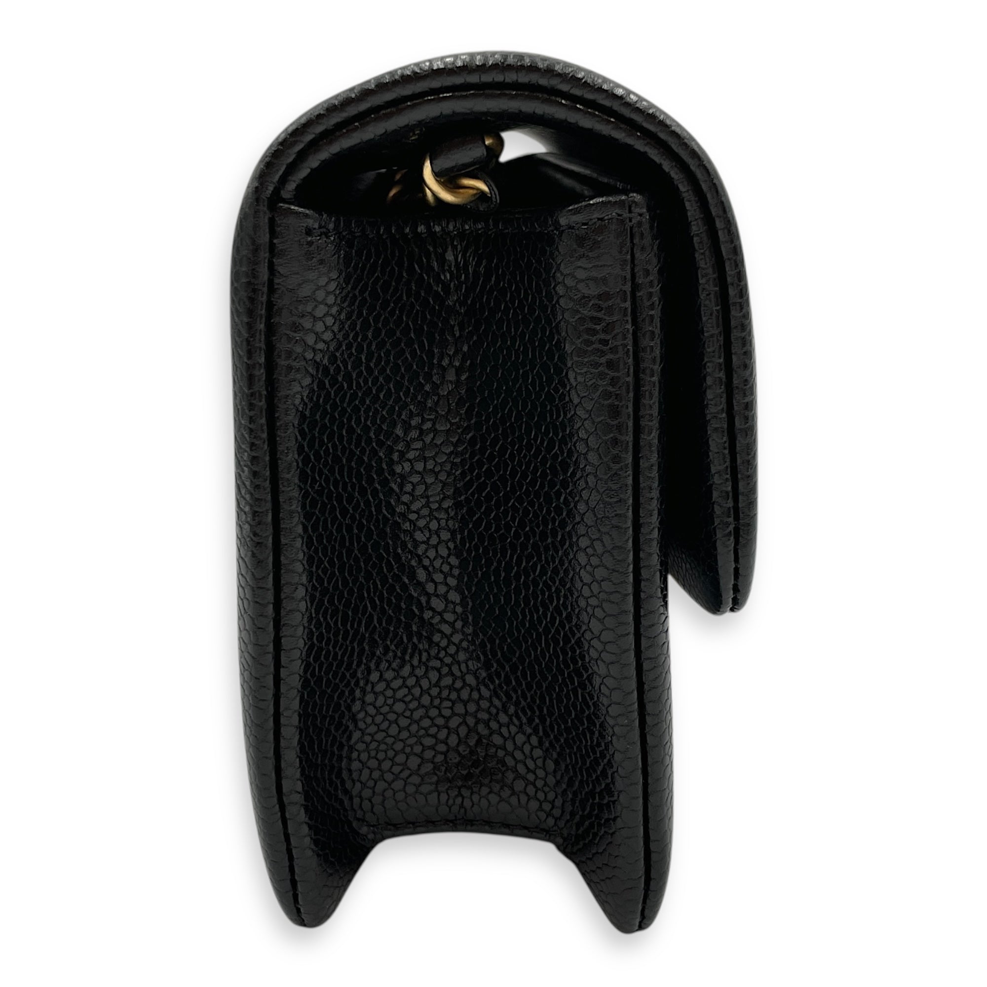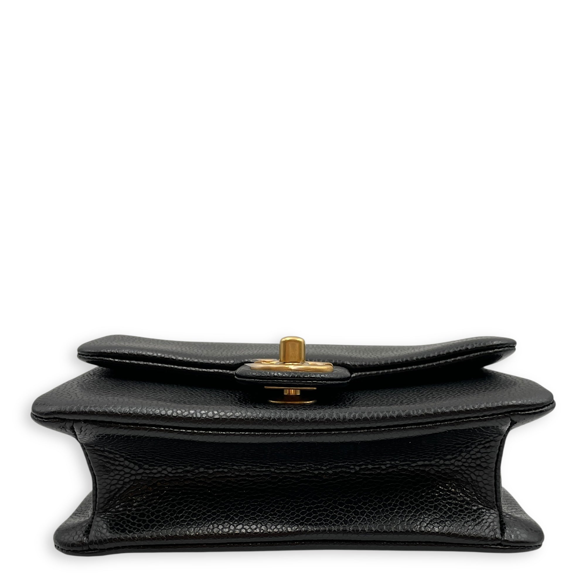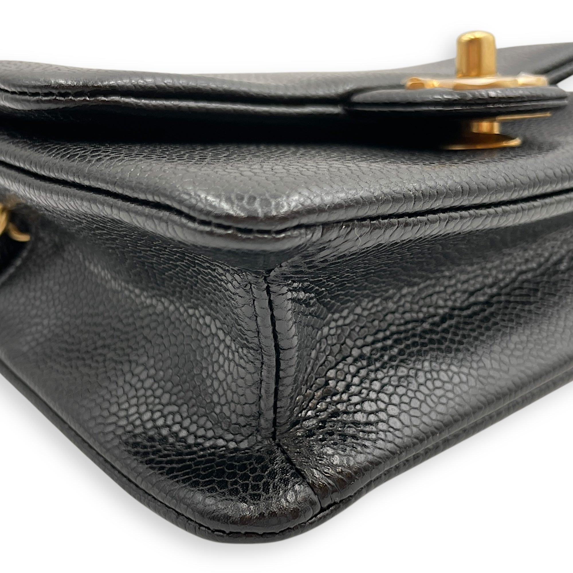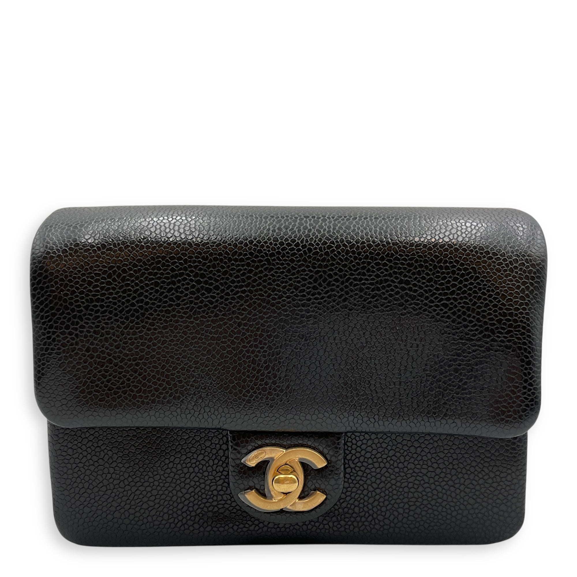 CC Flap Mini Black Crossbody Bag in Calfskin, Gold hardware
