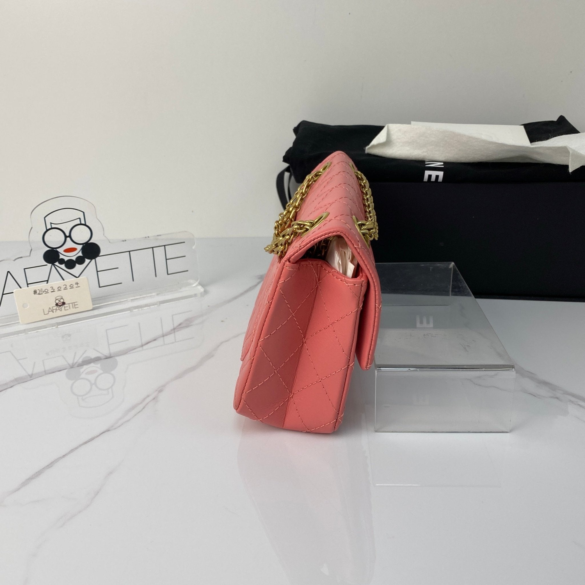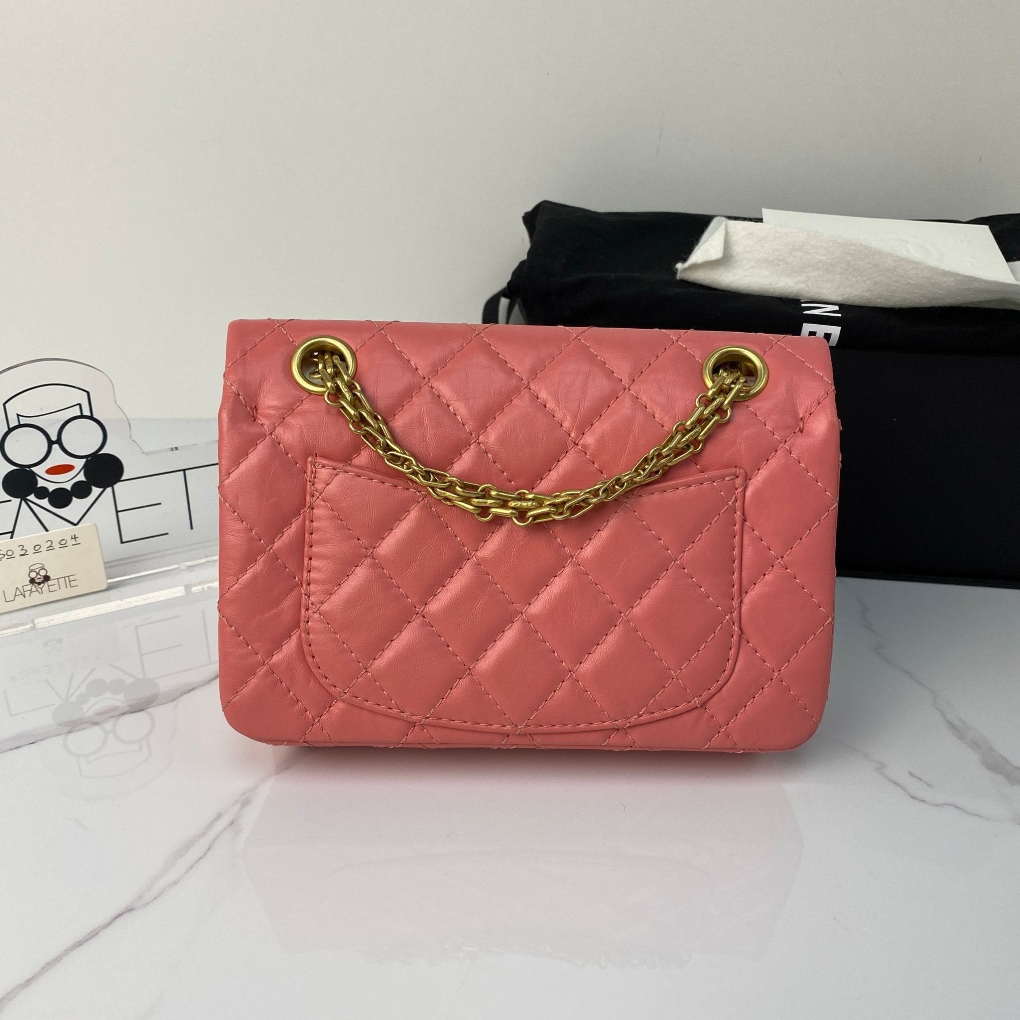 The Chanel 2.55 Reissue Mini Flap in pink aged calfskin is a blend of vintage charm and modern femininity. Wear it crossbody for a chic daytime look or as a clutch for evening elegance. The perfect pop of color to elevate any outfit!