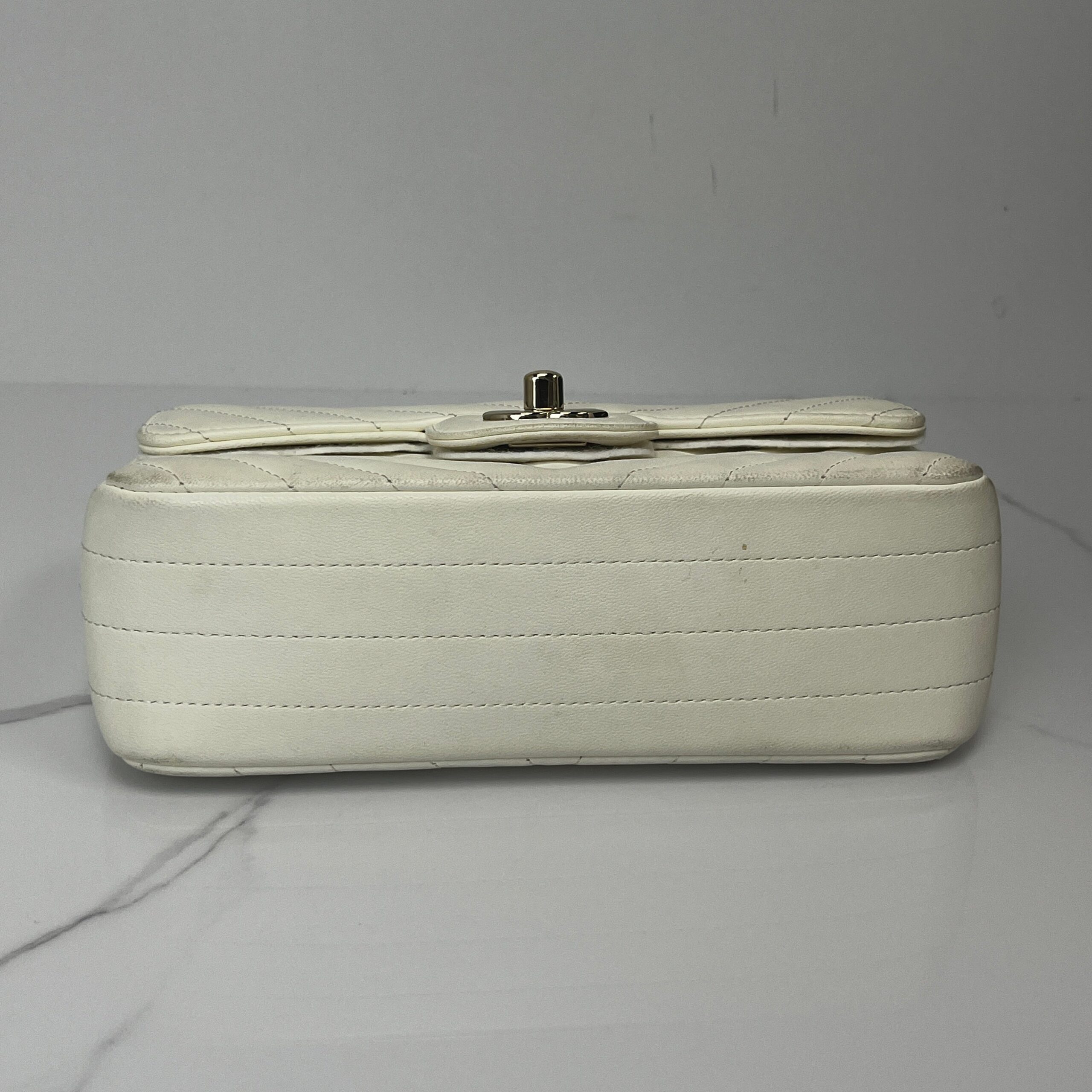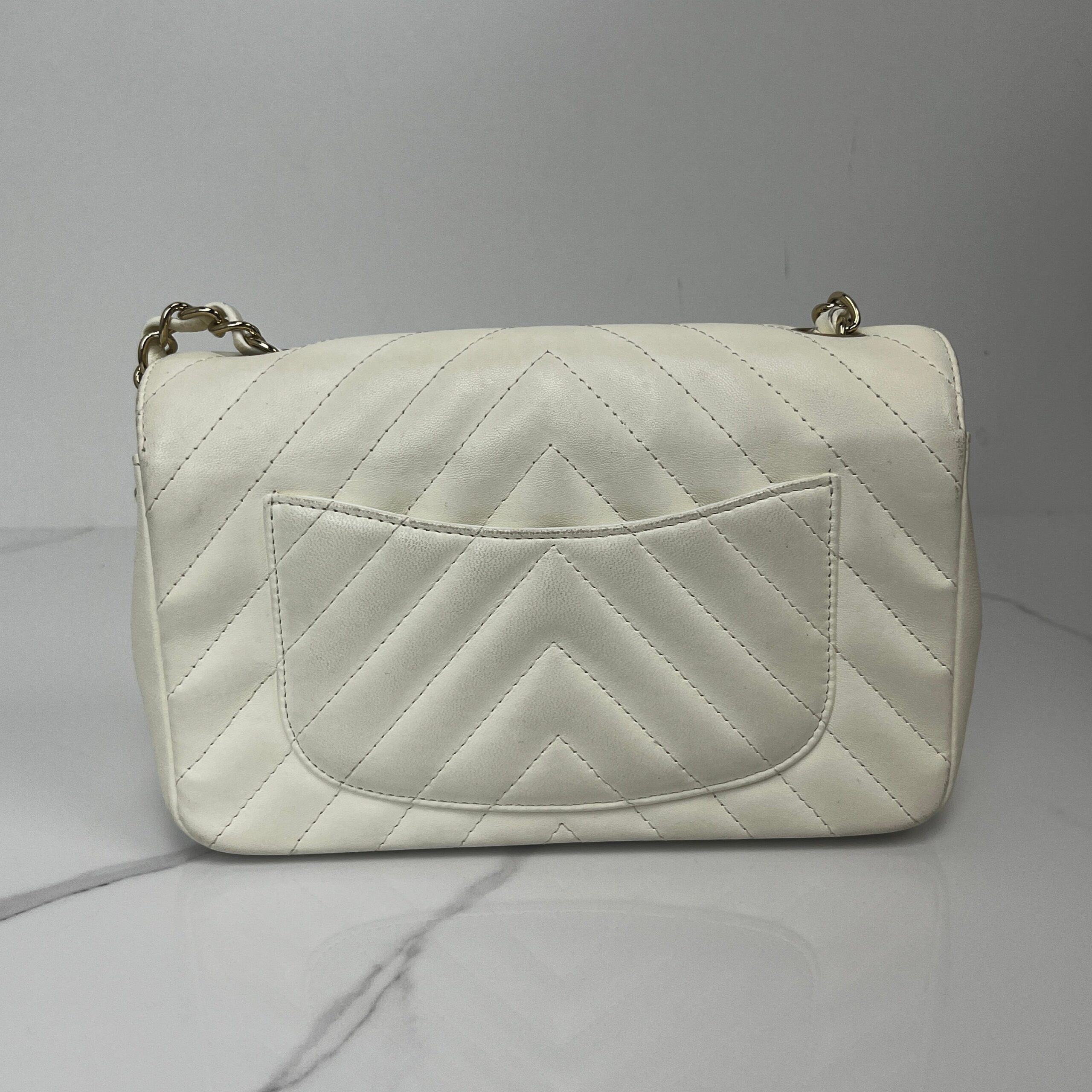 Elevate your look with the Chanel Chevron Mini Rectangle Chain Bag in luxurious lambskin. Its compact size and elegant design make it the perfect accessory for both day and night. Whether worn crossbody or as a chic clutch, this versatile bag adds a touch of classic Chanel sophistication to any outfit.