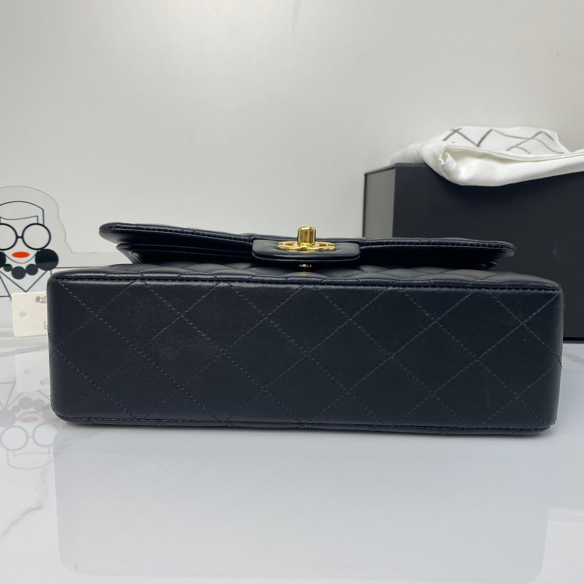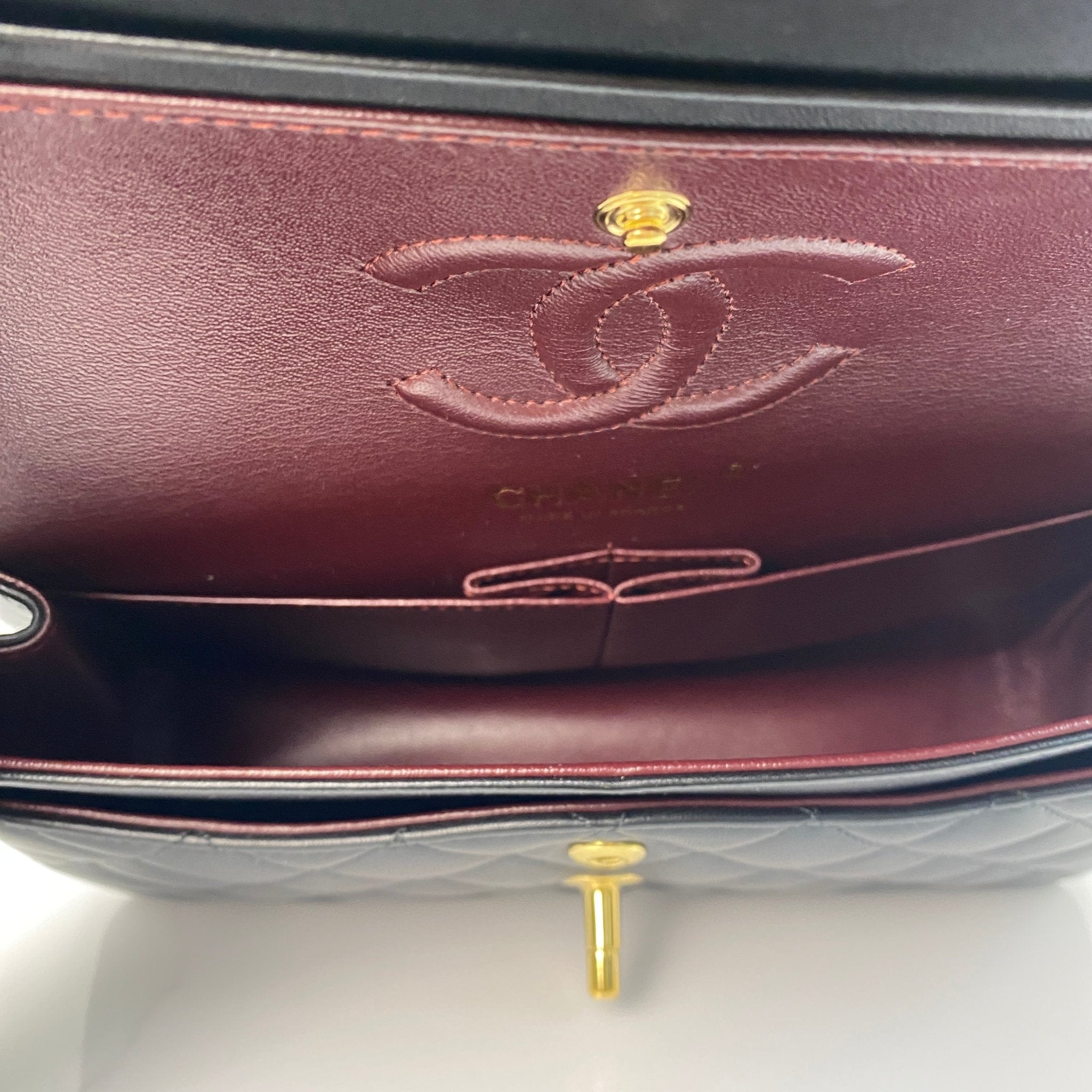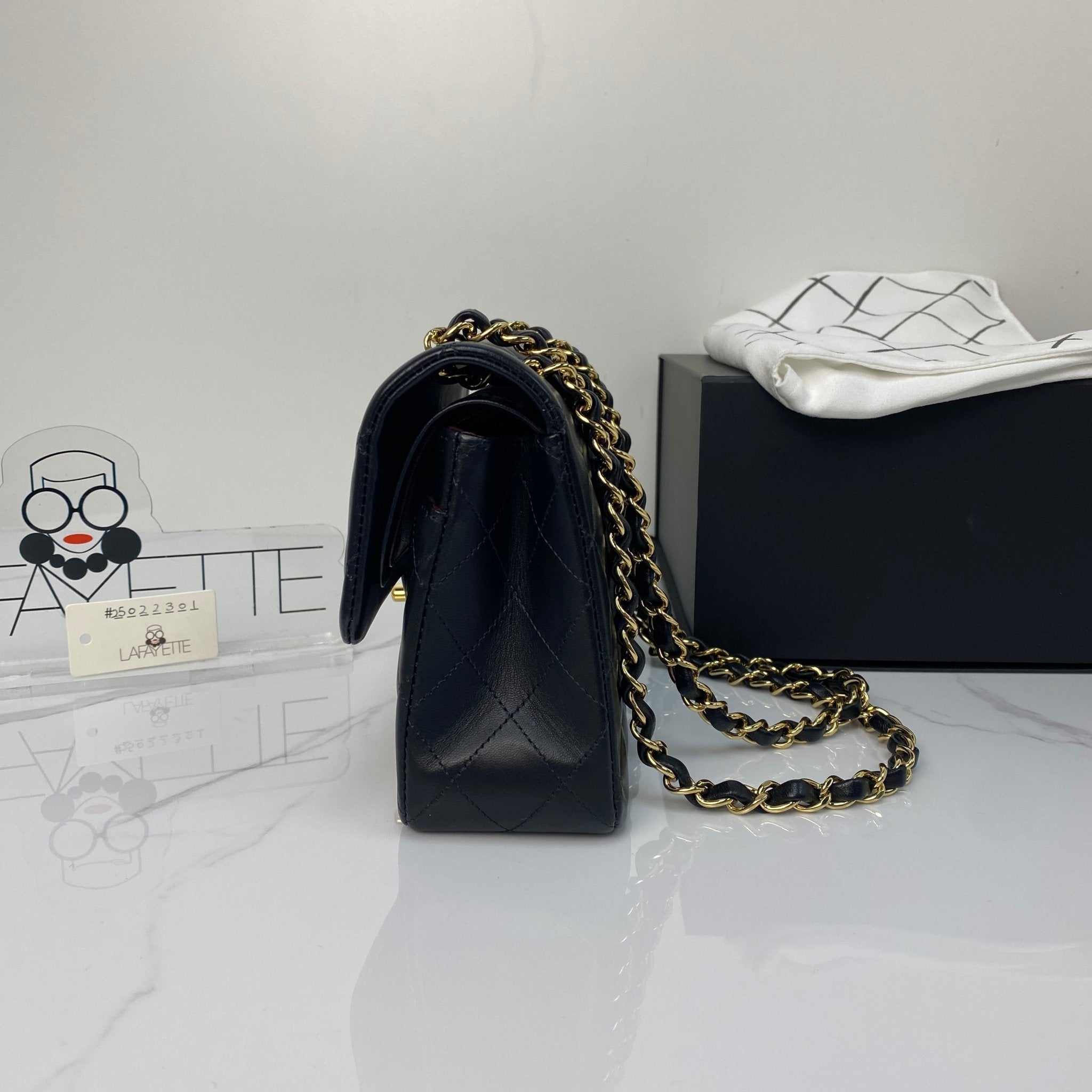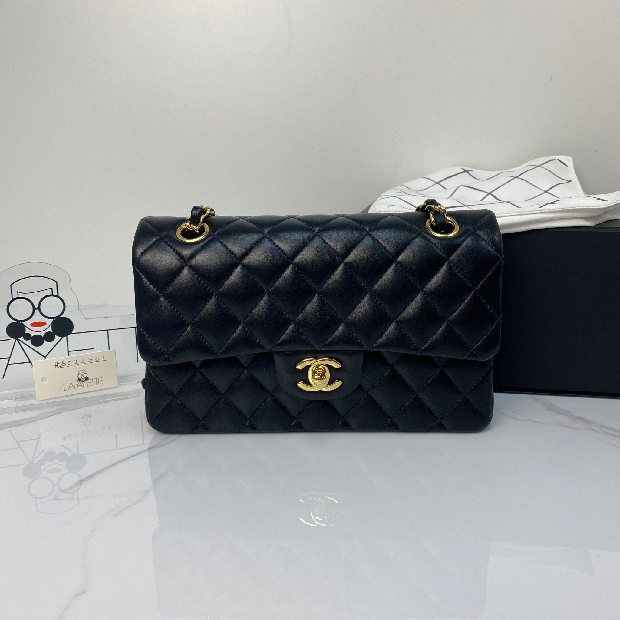 The Chanel Small Classic Flap in Black lambskin is the definition of timeless elegance. Dress it up with an evening gown or pair it with denim and a blazer for effortless Parisian chic. Its versatile size and iconic design make it a forever staple.