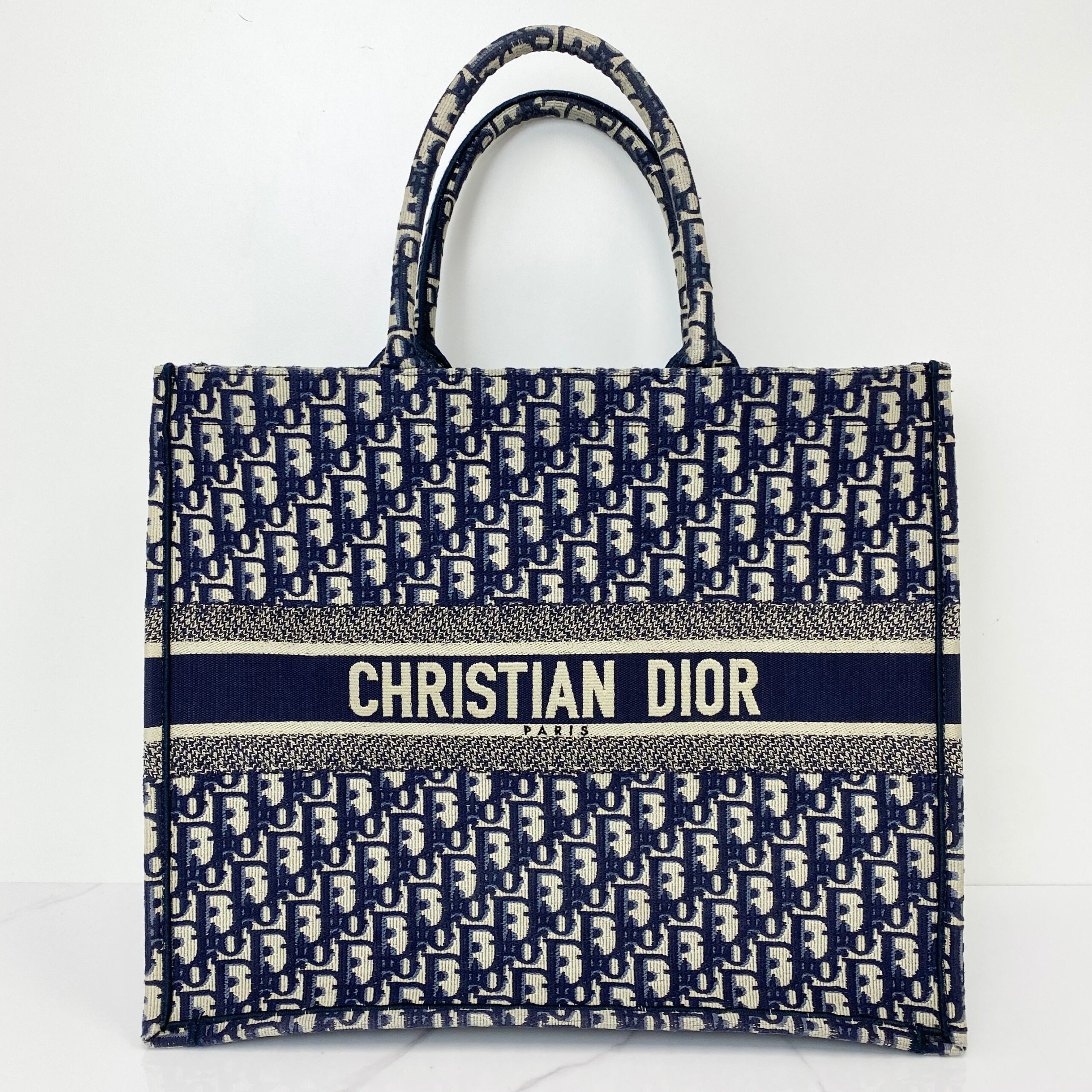 The Christian Dior Large Book Tote in Blue coated canvas is the ultimate statement piece for work, travel, or everyday elegance. Spacious yet structured, this iconic tote effortlessly carries your essentials—style it with casual denim or sleek tailoring for a polished look.