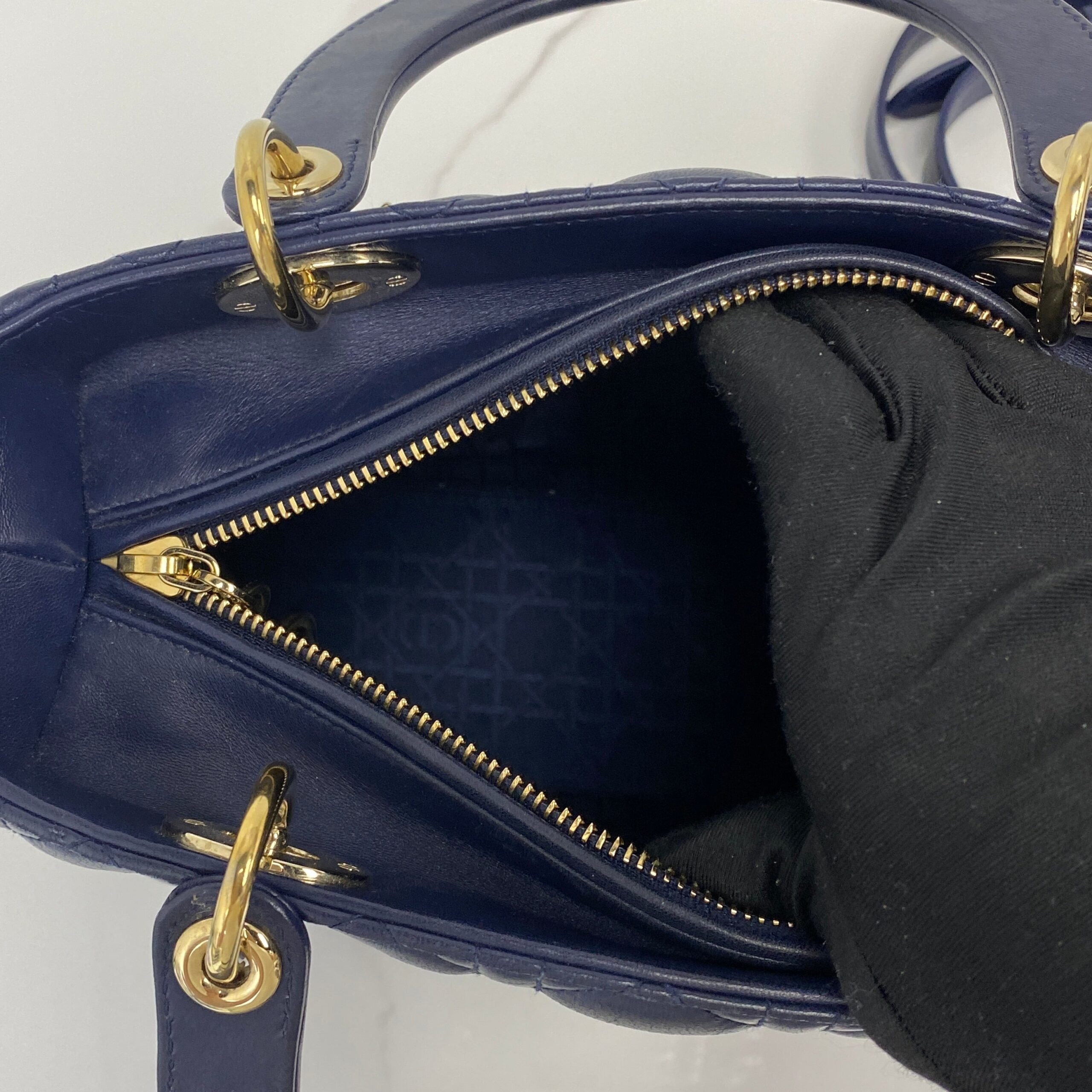The Christian Dior Medium Lady Dior in lambskin is the embodiment of timeless elegance. Its iconic quilted design and sophisticated silhouette make it a versatile piece, perfect for both day and evening wear. Whether carried by hand or worn with its shoulder strap, this bag effortlessly elevates any ensemble with its classic charm.
