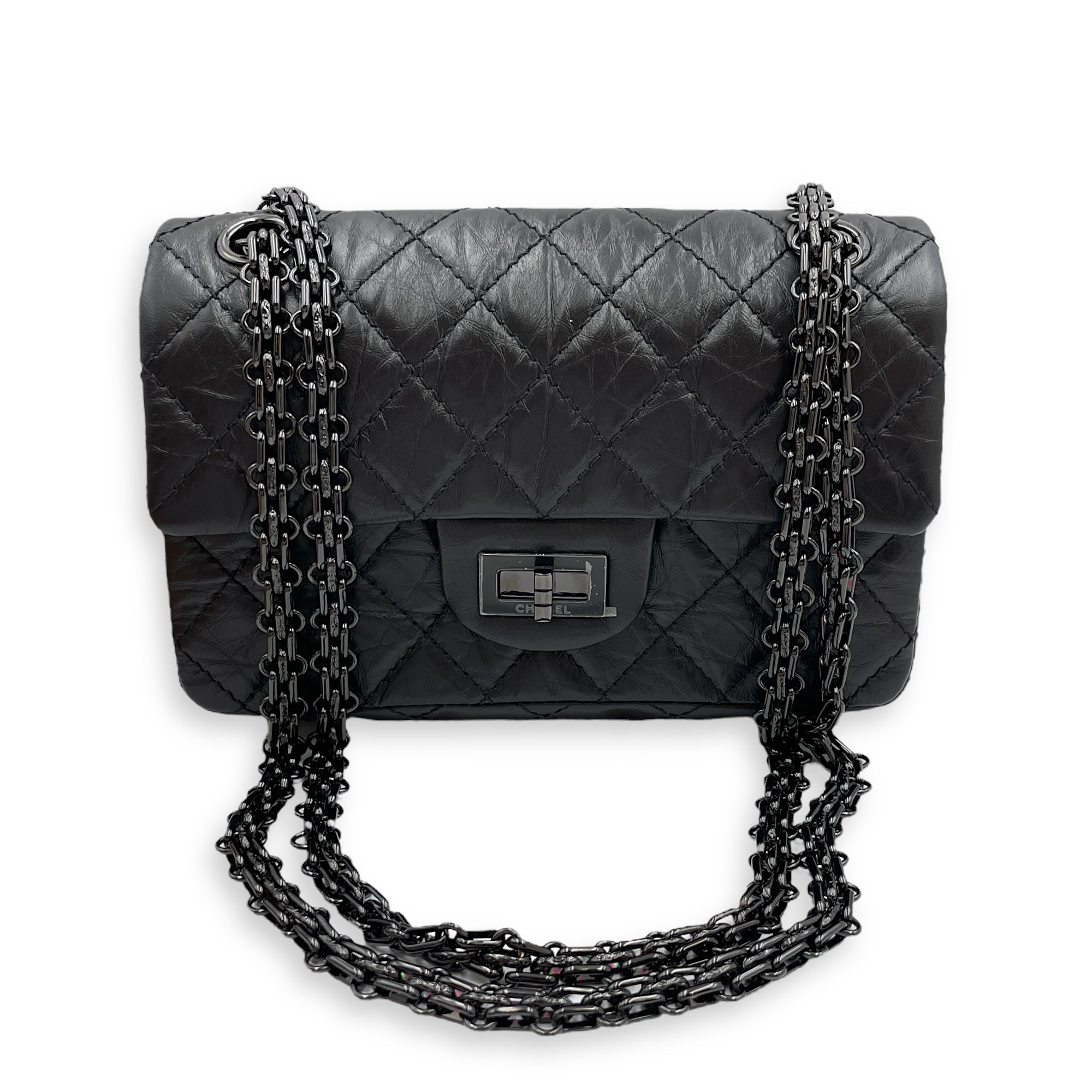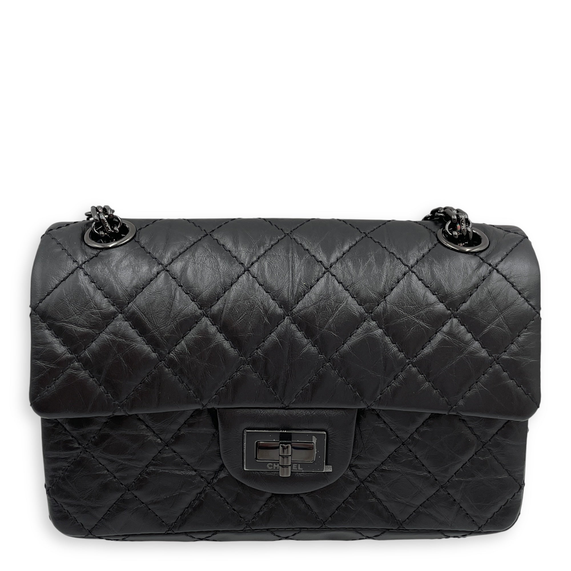 Classic Reissue 2.55 Mini SoBlack Shoulder Bag in Distressed Leather, Gunmetal hardware