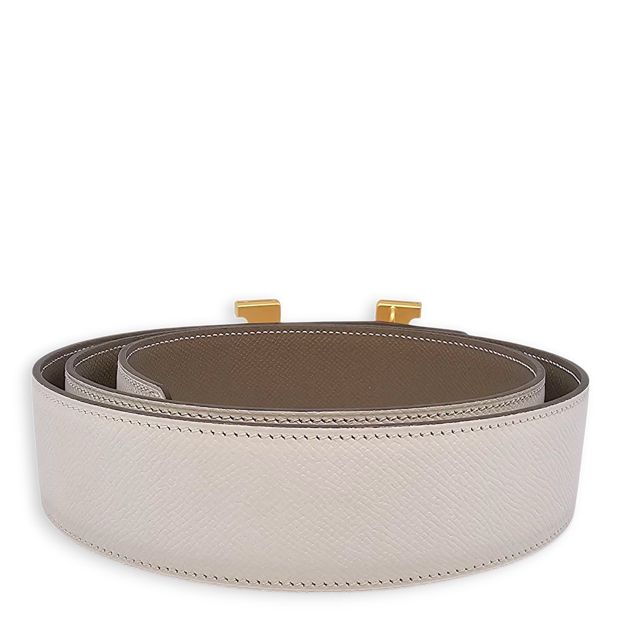 Be the first to review “Constance 42mm X 105cm Blanc/Etoupe Belt Kit in Epsom, Brushed Gold hardware”