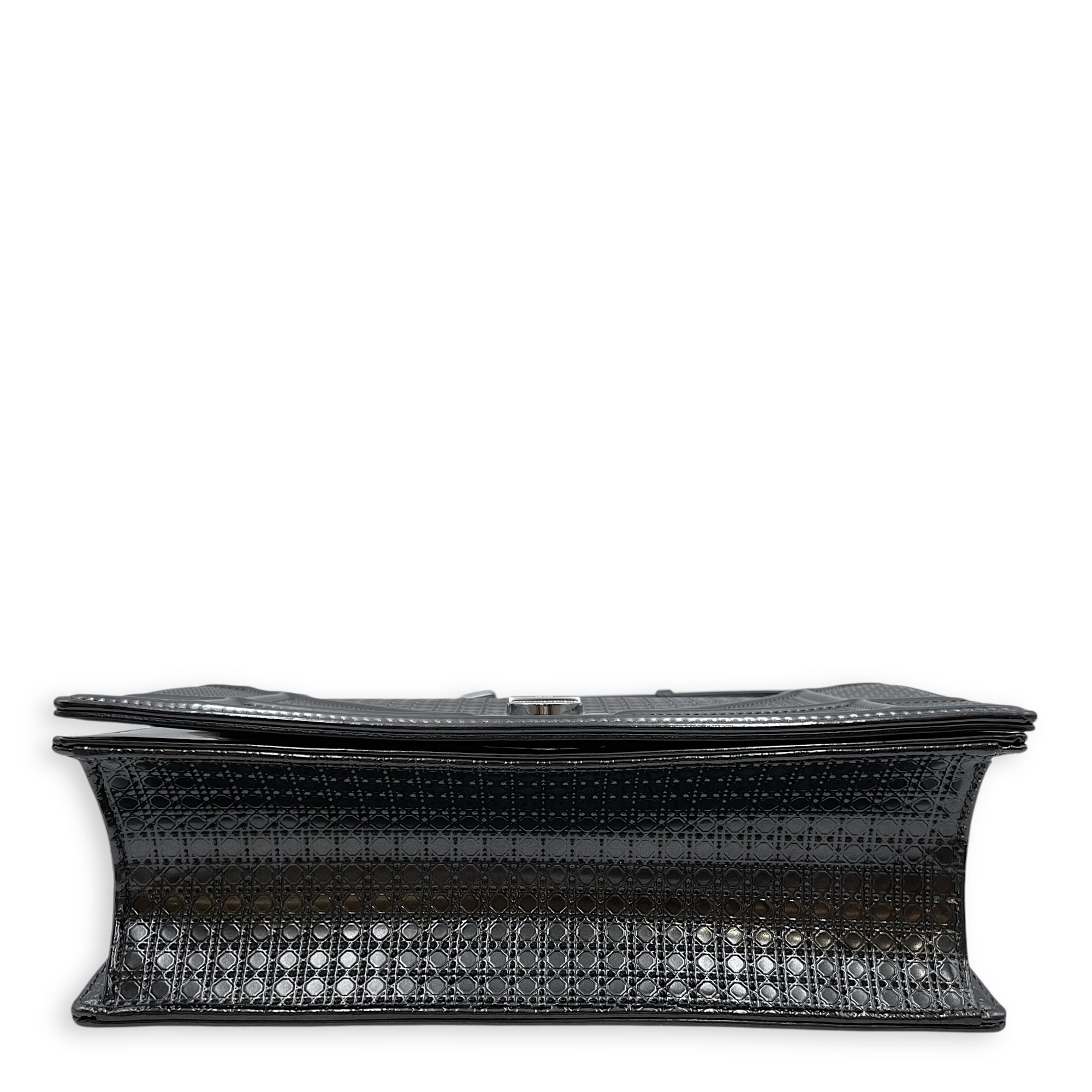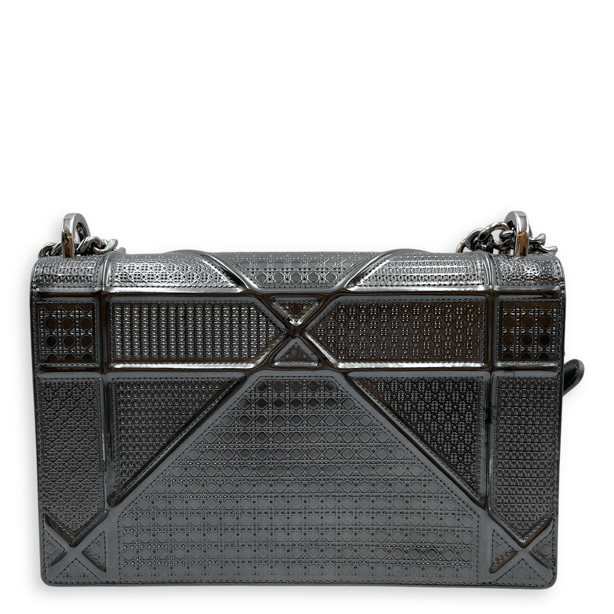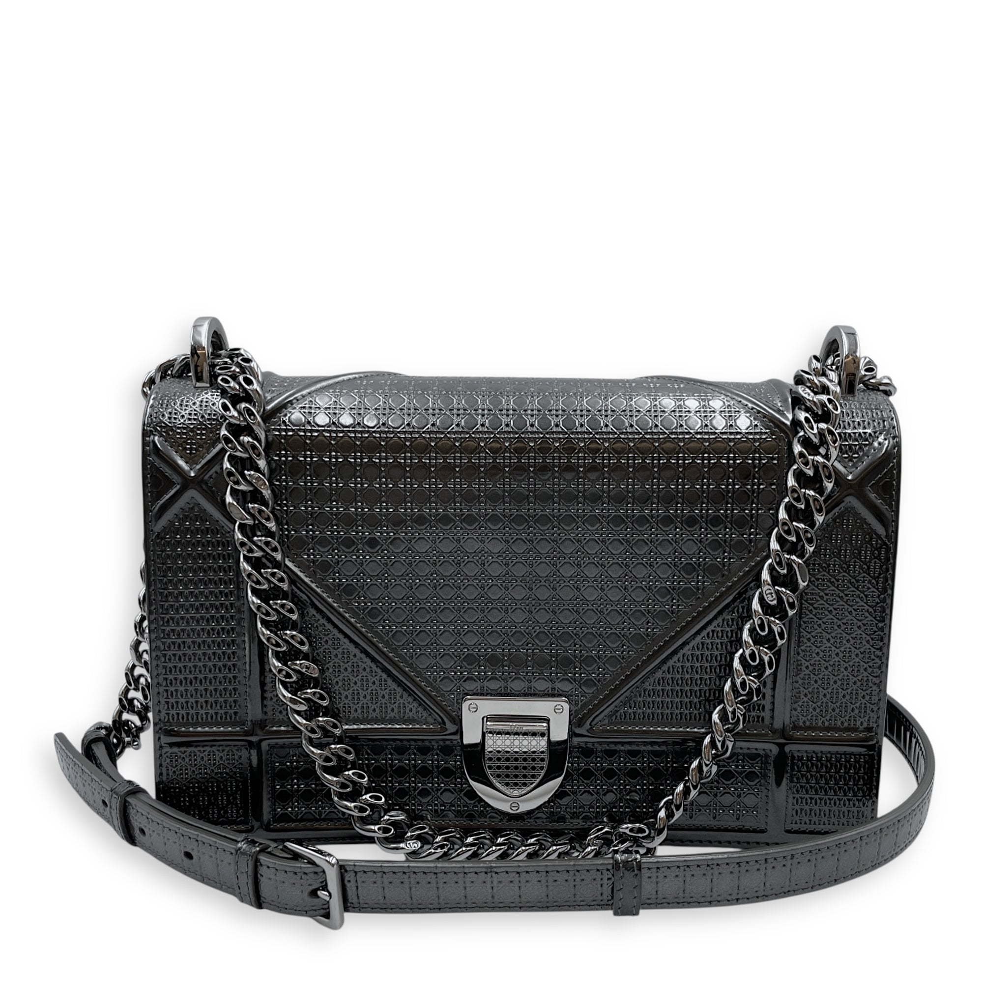 Diorama Medium Metallic Grey Shoulder Bag in Patent Leather, Silver hardware