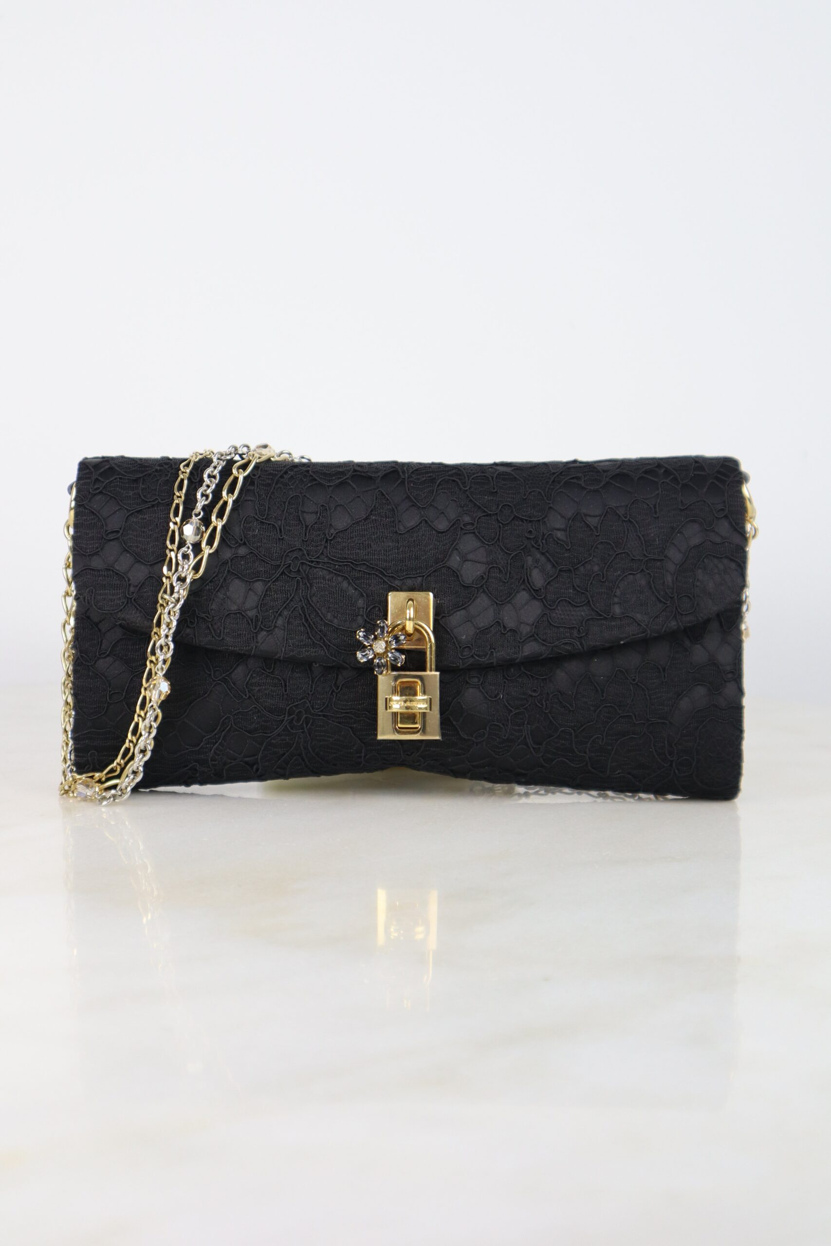 Dolce & Gabbana Black Lace Padlock Chain Clutch WOC