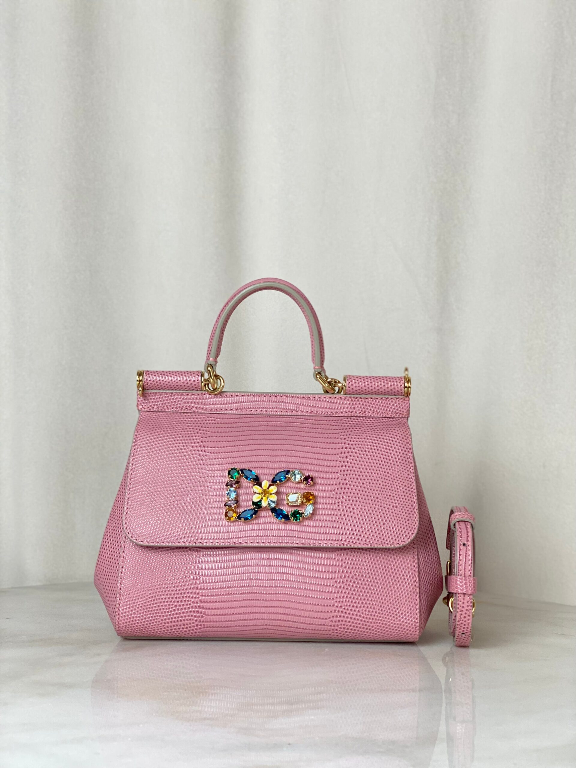 Be the first to review “Dolce & Gabbana Pink Iguana Print Crystal Sicily Small Bag”