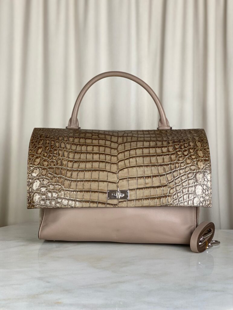 – Handle / Strap: Some scuffing and fraying at leather tabs of strap