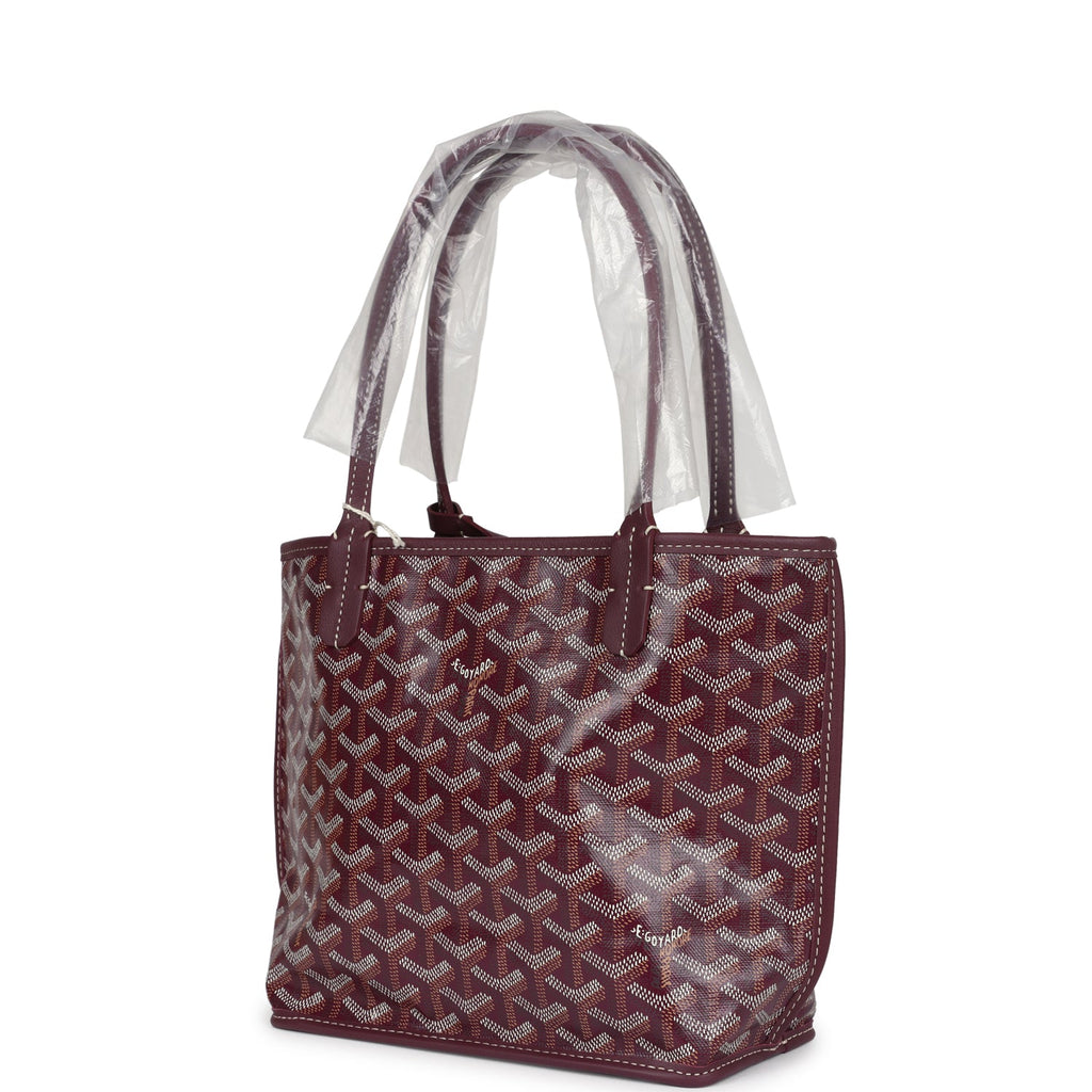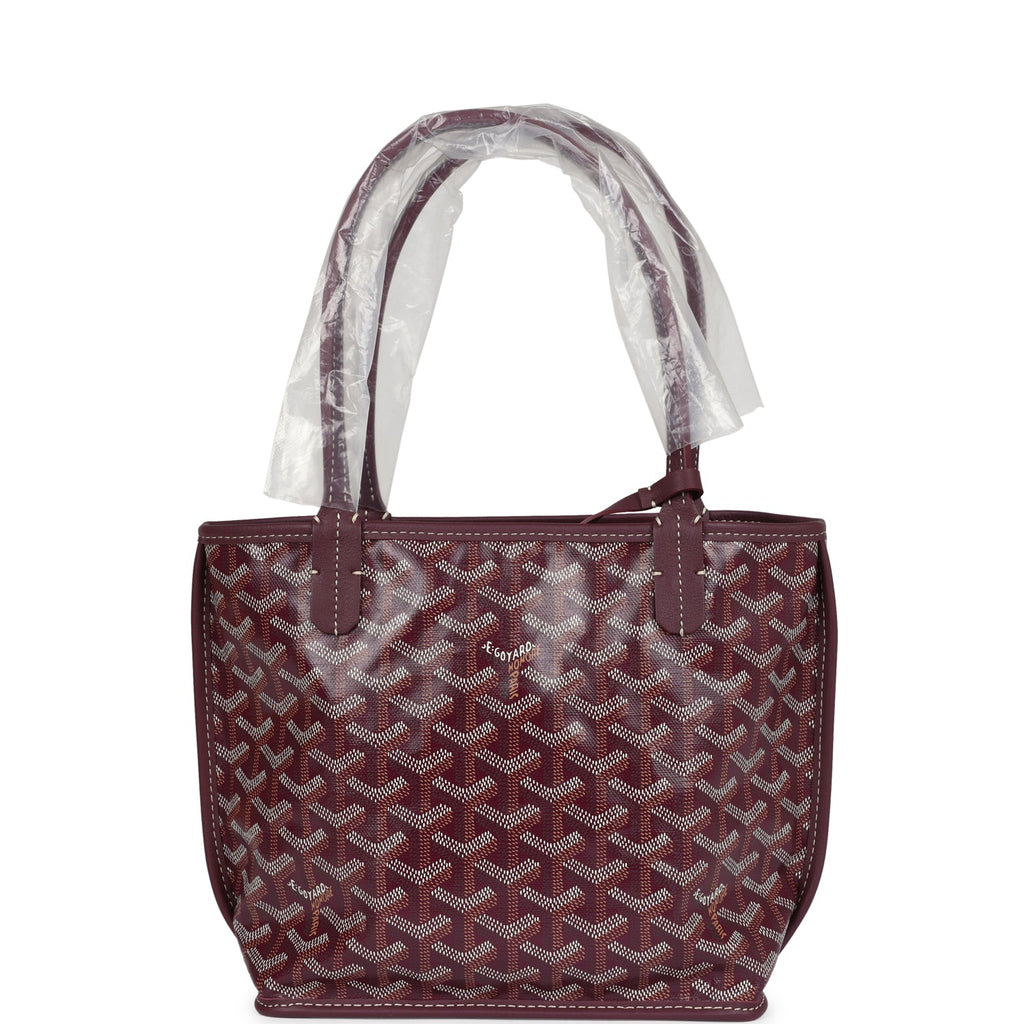 Goyard Goyardine Burgundy Anjou Mini Bag Palladium Hardware Shop for an authentic Goyard goyardine burgundy Anjou mini bag with palladium hardware in new and never worn condition at Madison Avenue Couture.