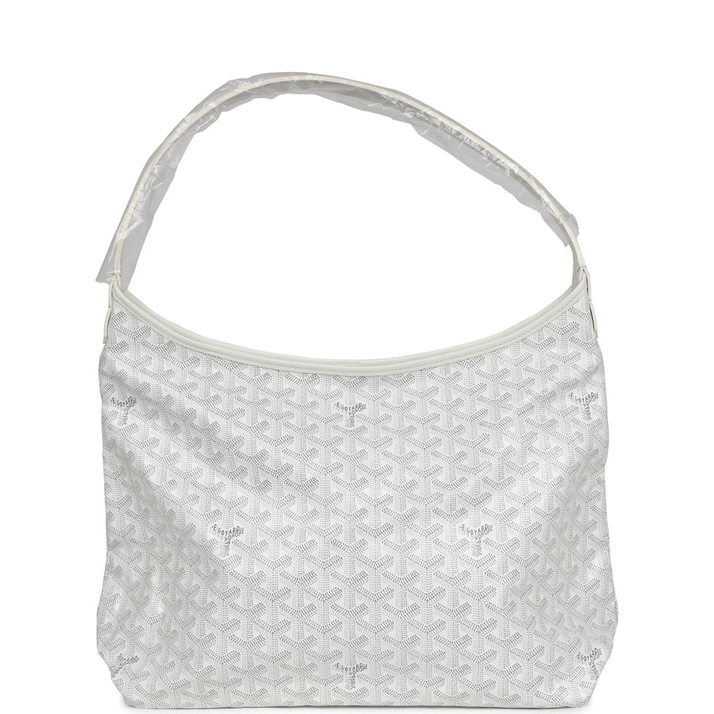 Goyard Goyardine White Boheme Hobo Bag Palladium Hardware Shop for an authentic Goyard Goyardine white Boheme hobo bag with palladium hardware in new and never worn condition at Madison Avenue Couture.
