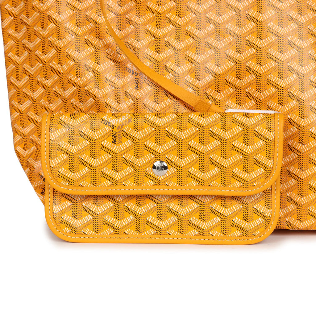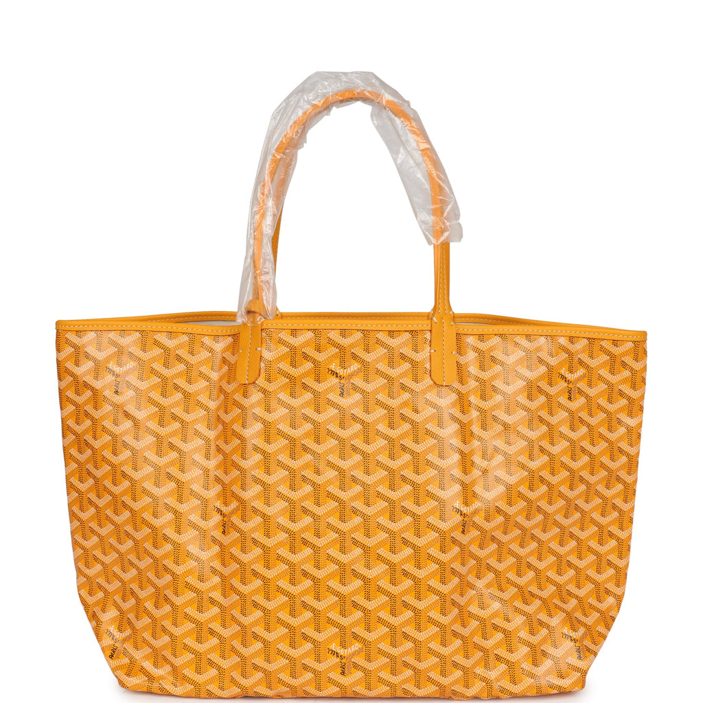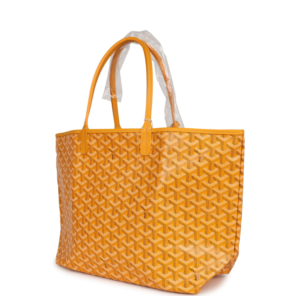 Goyard Goyardine Yellow Saint Louis PM Tote Bag Palladium Hardware Shop for an authentic Goyard Goyardine Saint Louis PM tote in yellow with palladium hardware in new and never worn condition at Madison Avenue Couture.