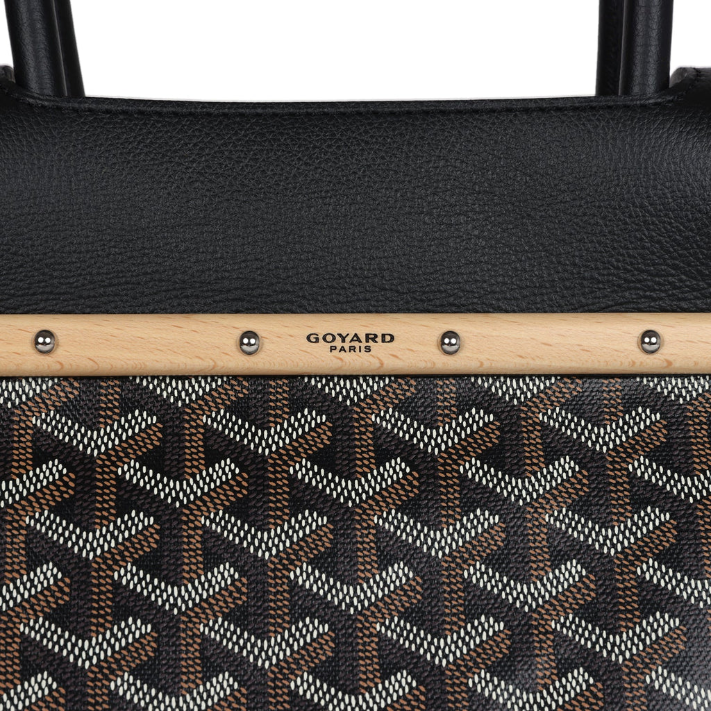 Goyard Saigon Tote Black Goyardine Canvas Palladium Hardware Shop for an authentic Goyard Saigon Tote in Black Goyardine canvas and Chevroches calfskin with palladium hardware in new and never worn condition at Madison Avenue Couture.