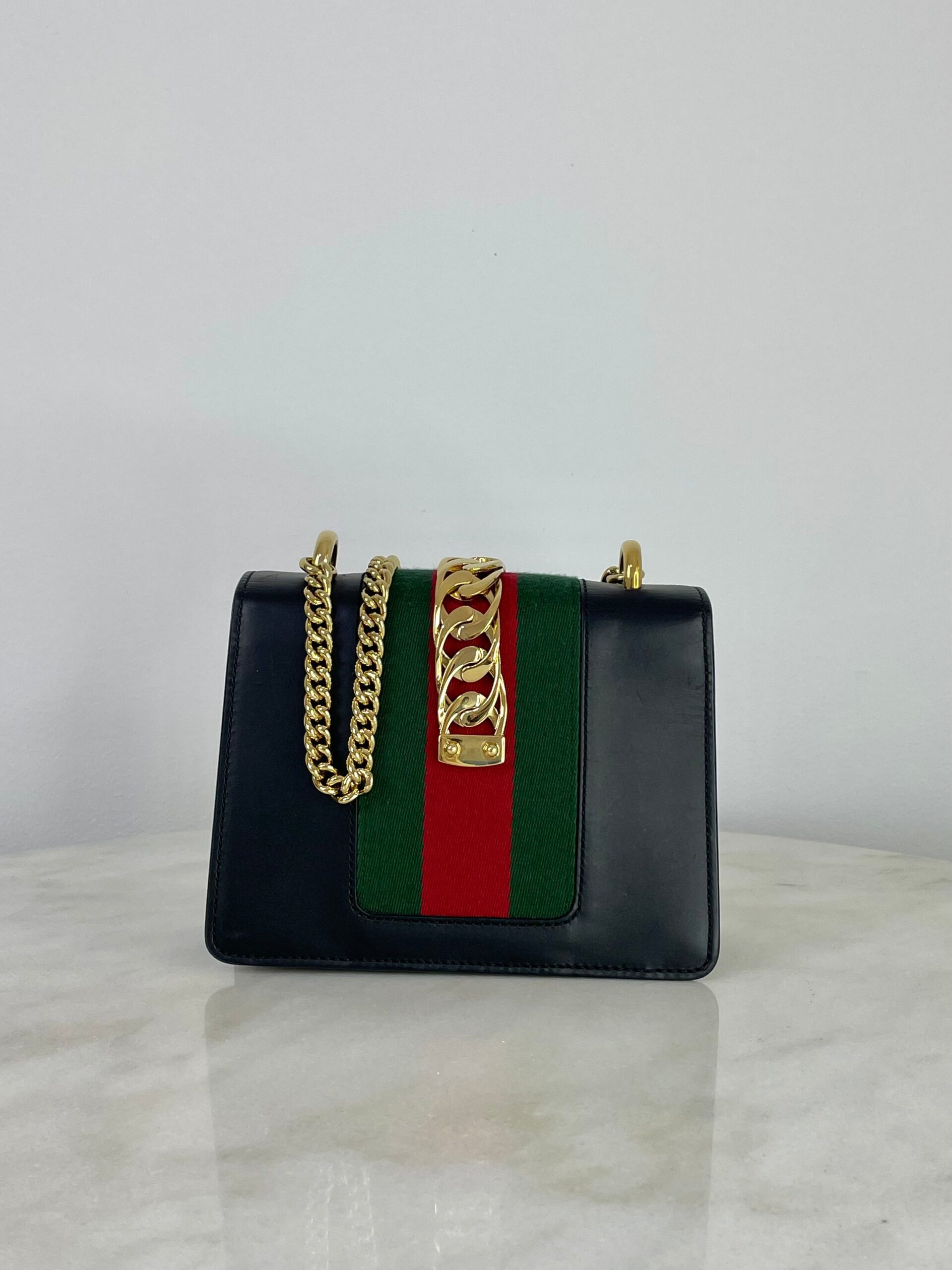 Gucci Black Web Ophidia Sylvie Mini Bag W/ Chain