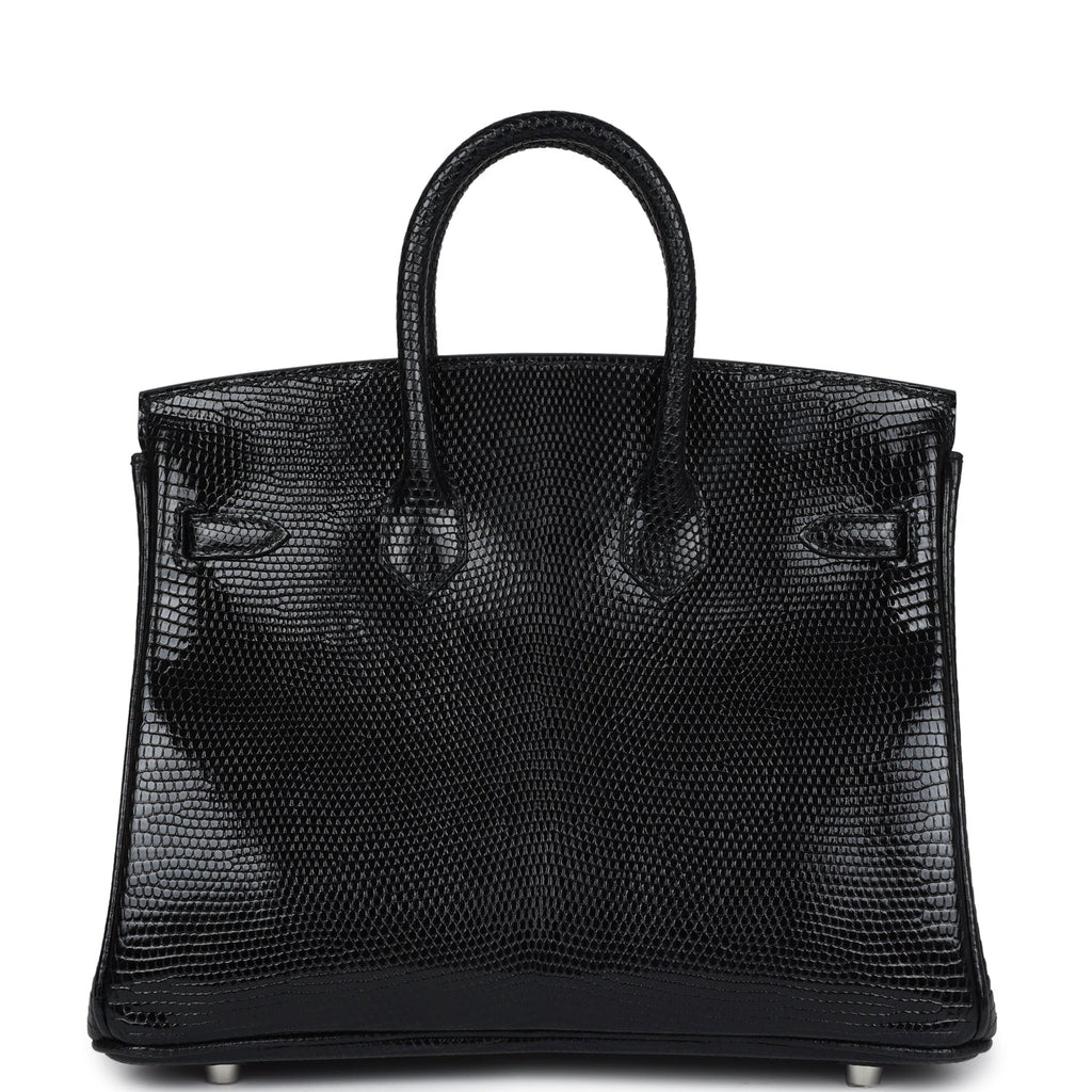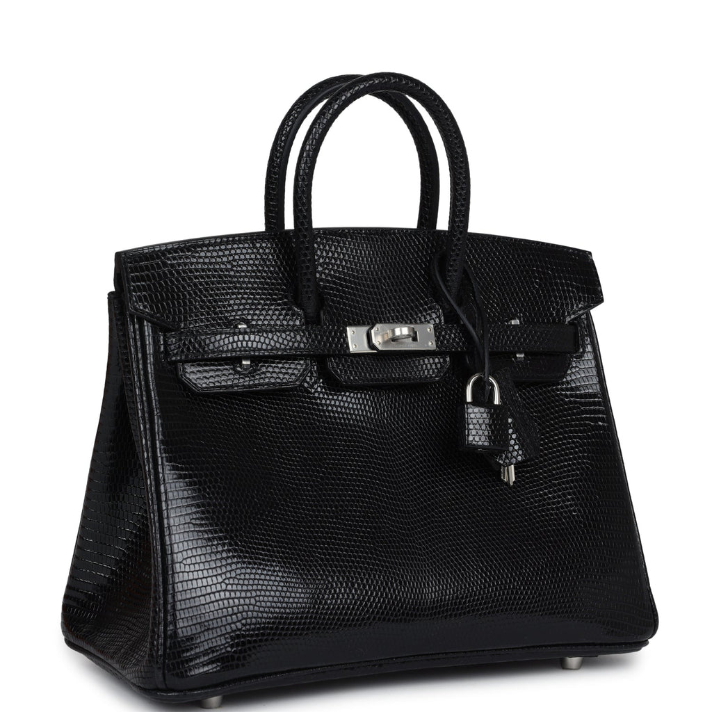 Hermes Birkin 25 Black Shiny Varanus Niloticus Lizard Palladium Hardware Shop for an authentic Hermes Birkin 25 in Black Varanus Niloticus Lizard leather with palladium hardware in new and never worn condition at Madison Avenue Couture.