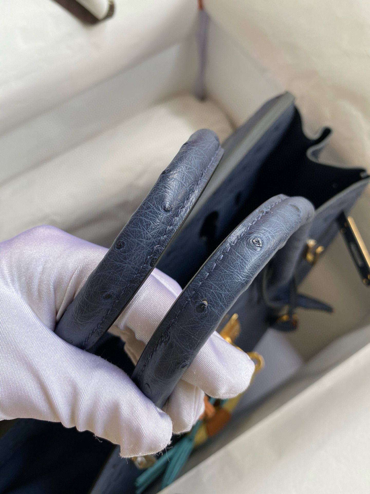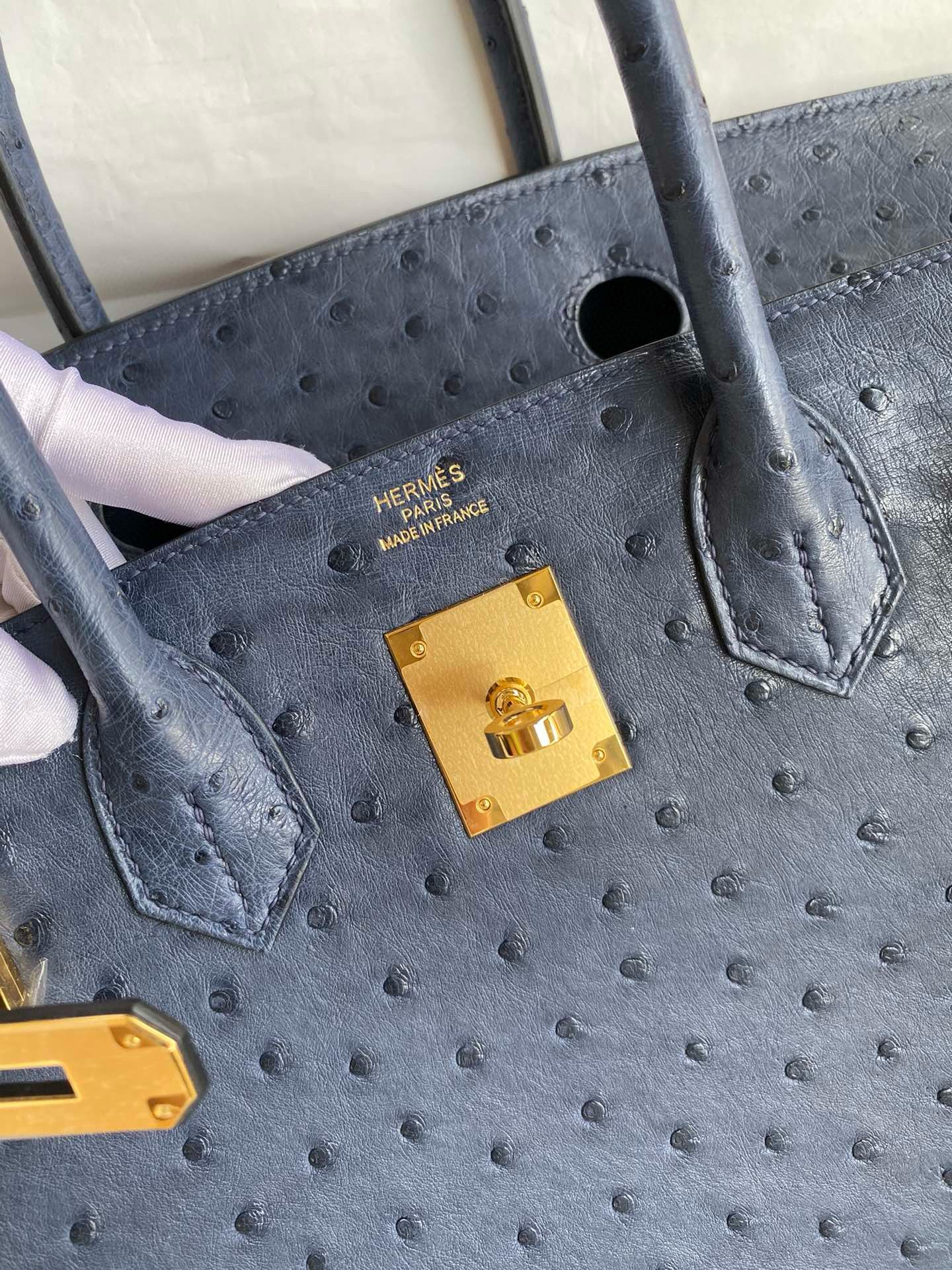 Hermes Birkin 30 Retourne Handmade Bag In Blue de Malte Ostrich Leather