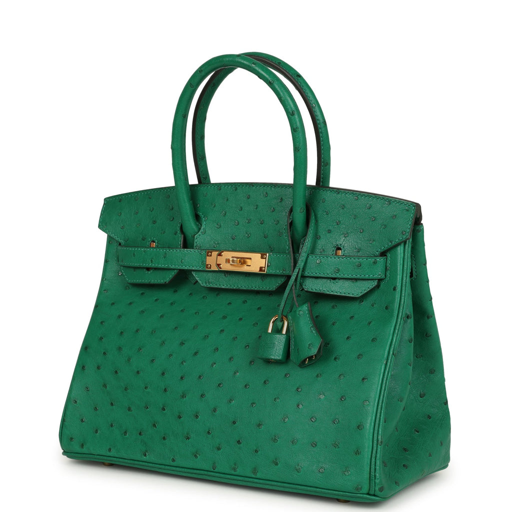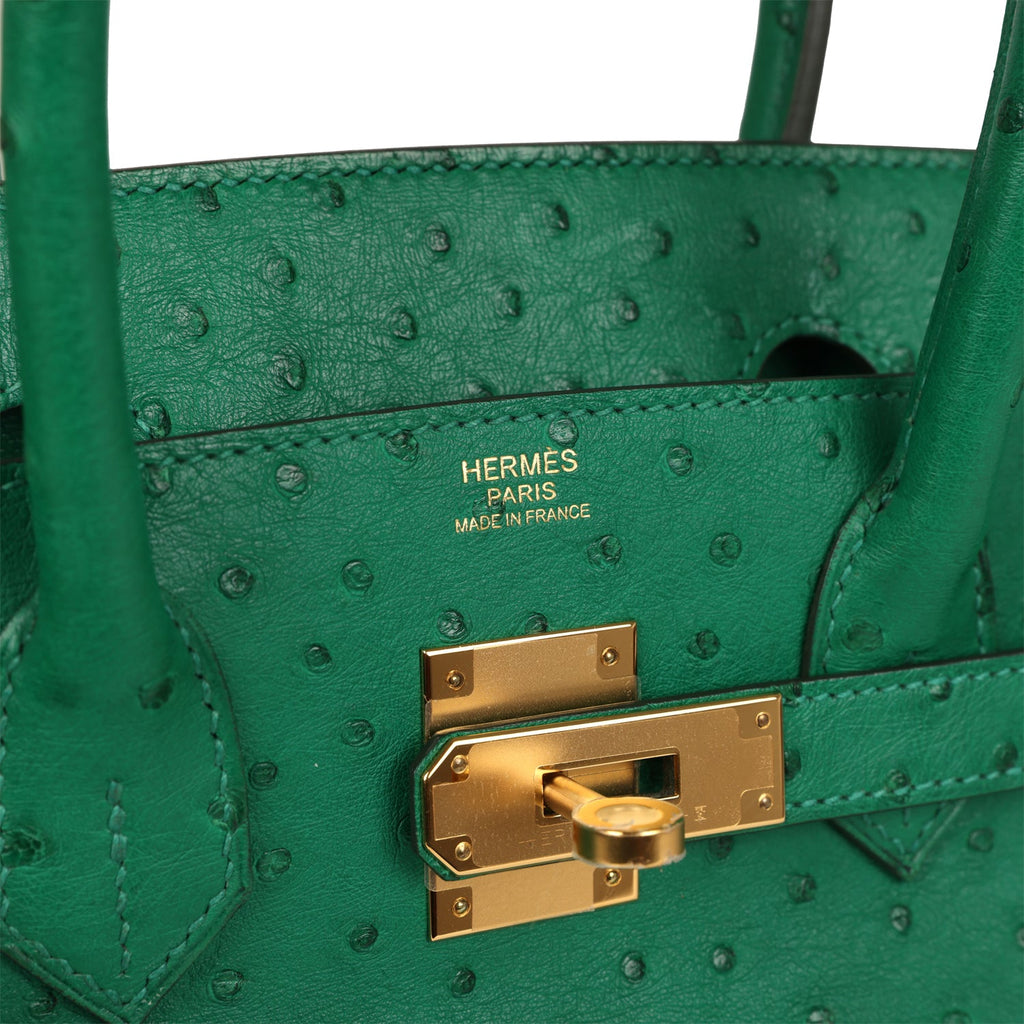 Hermes Birkin 30 Vert Vertigo Ostrich Gold Hardware Shop for an authentic Hermes Birkin 30 in Vert Vertigo Ostrich leather with gold hardware in never worn condition at Madison Avenue Couture.