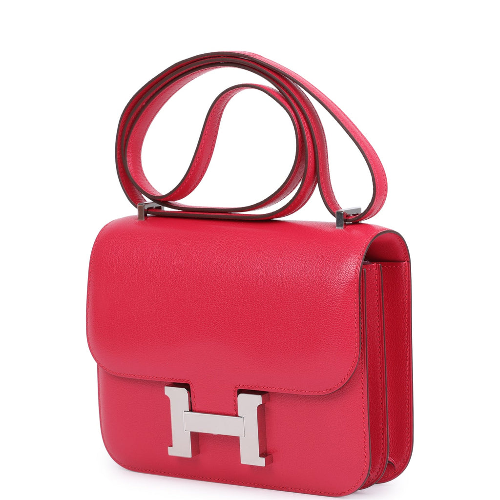 Hermes Constance 18 Rose Extreme Chevre Chamkila Palladium Hardware Shop for an authentic Hermes Constance 1-18 in Rose Extreme Chevre Chamkila leather with palladium hardware in new and never worn condition at Madison Avenue Couture.