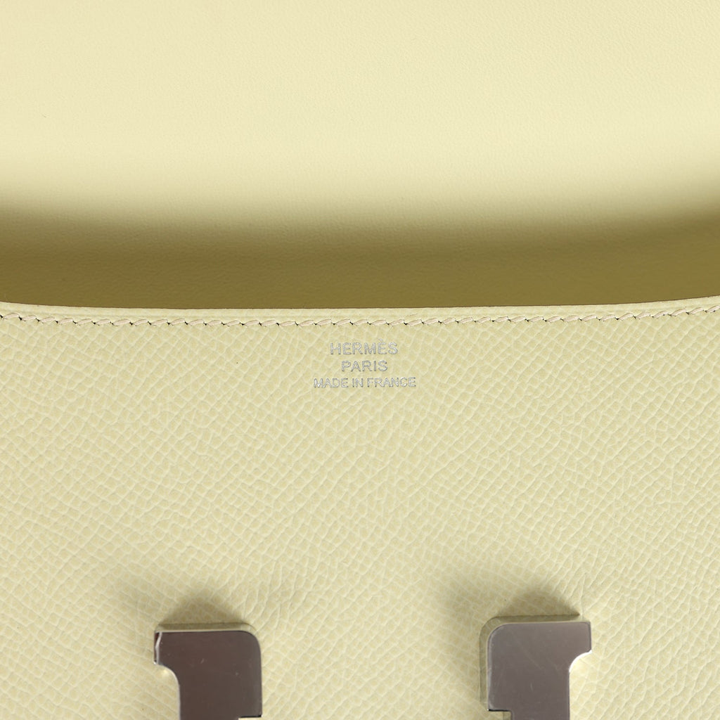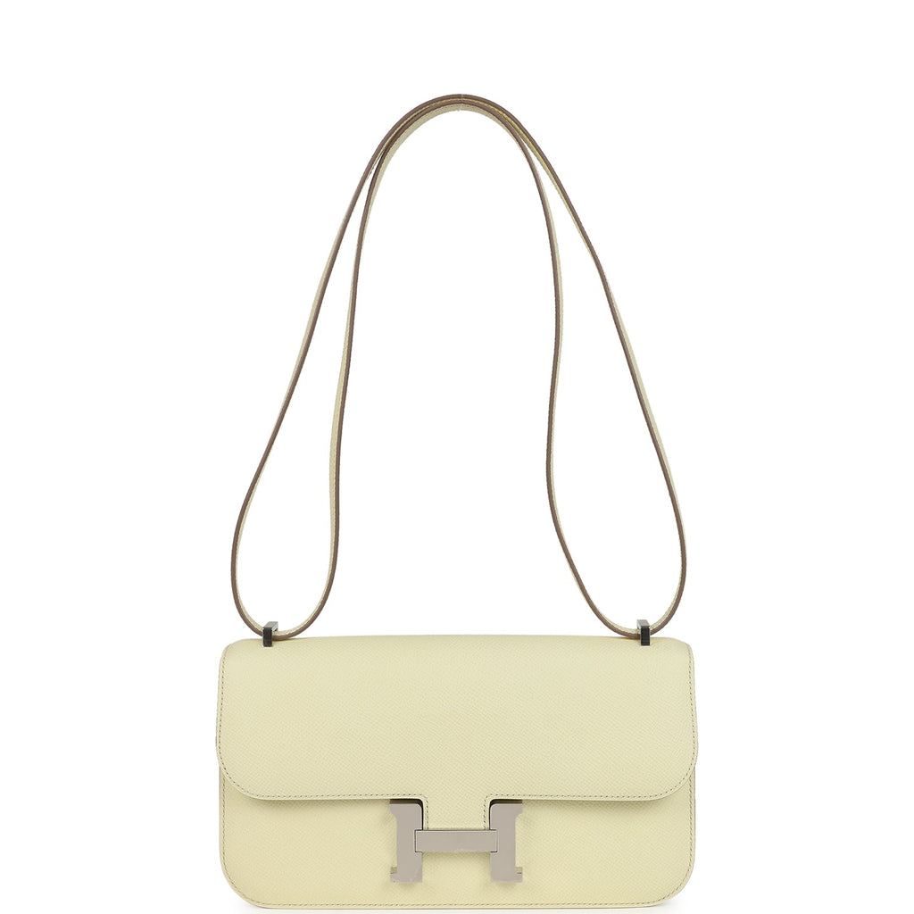 Hermes Constance Elan Jaune Milton Epsom Palladium Hardware Shop for an authentic Hermes Constance Elan in Jaune Milton epsom with palladium hardware in new and never worn condition at Madison Avenue Couture.