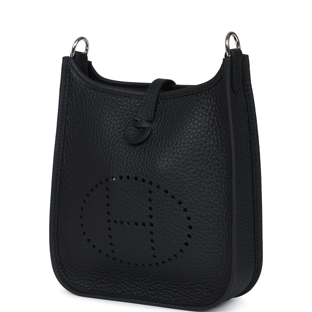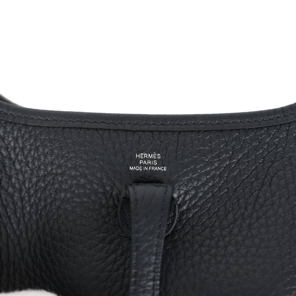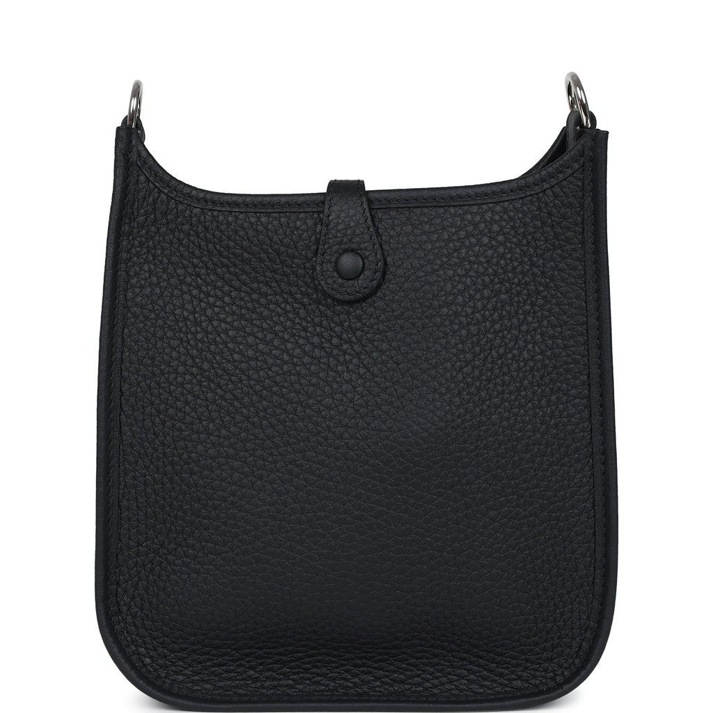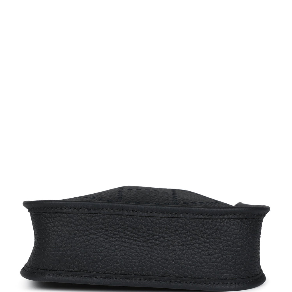 Hermes Evelyne TPM Black Clemence Palladium Hardware Shop for an authentic Hermes Evelyne TPM in Black clemence leather with palladium hardware in new and never worn condition at Madison Avenue Couture.