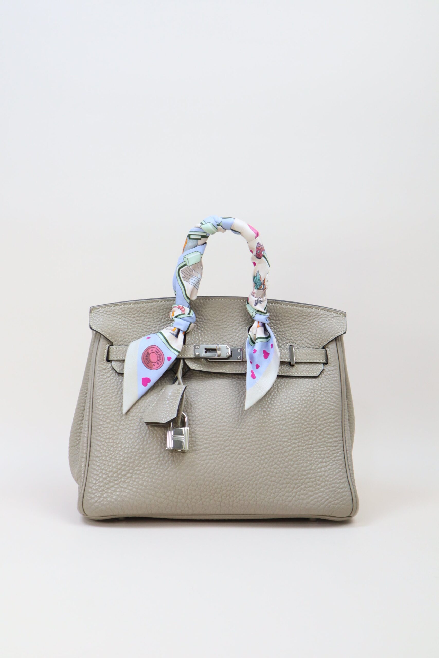 Hermes Gris Tourterelle Birkin 25 Bag with Twilly