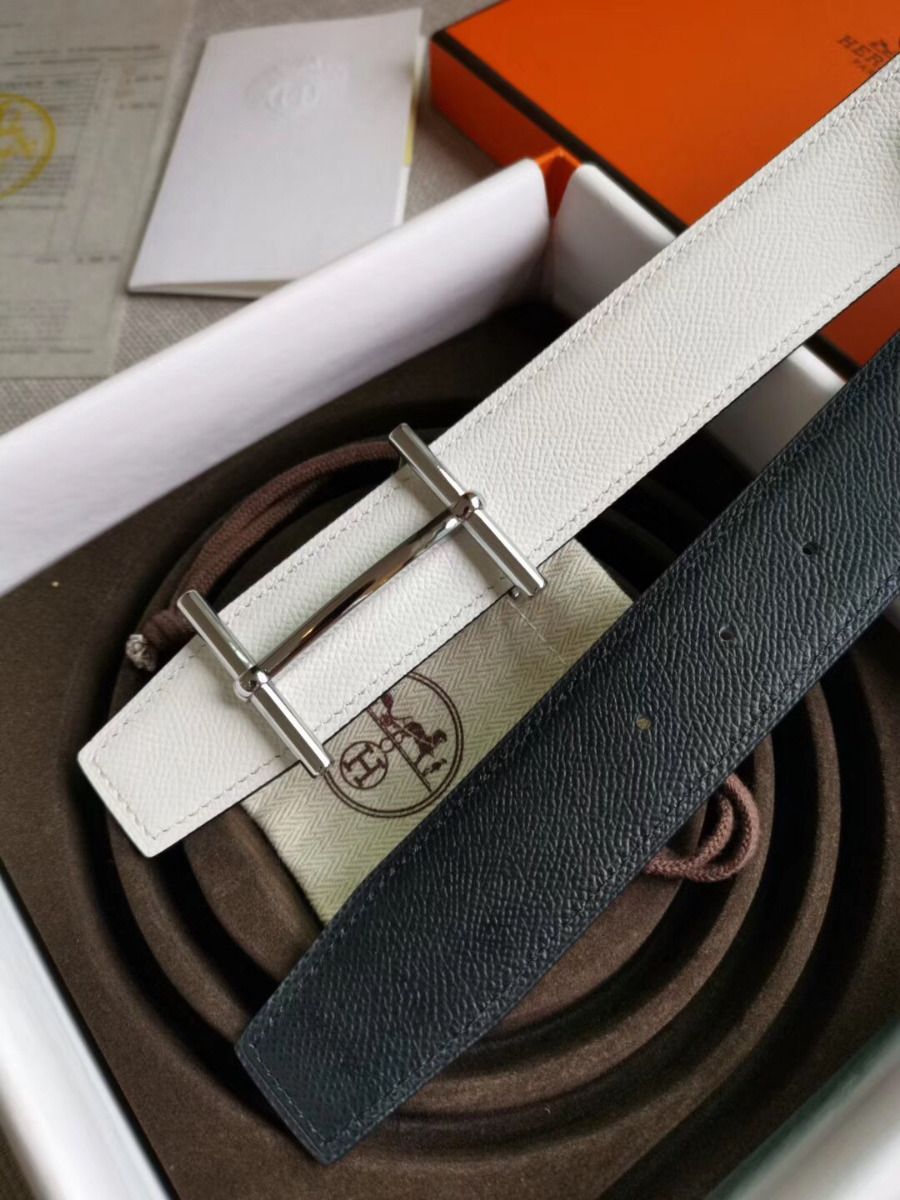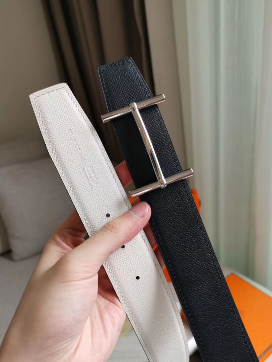 Hermes H d'Ancre Reversible Belt In Black/White Epsom Leather