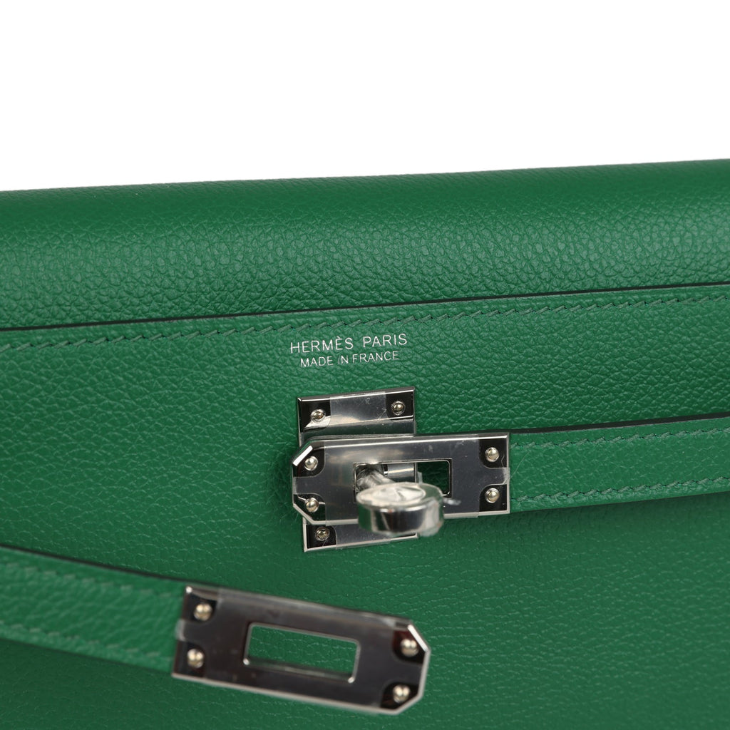 Hermes Kelly Danse Cactus Verso Evercolor Palladium Hardware Shop for an authentic Hermes Kelly Danse in Cactus Verso evercolor leather with palladium hardware in new and never worn condition at Madison Avenue Couture.