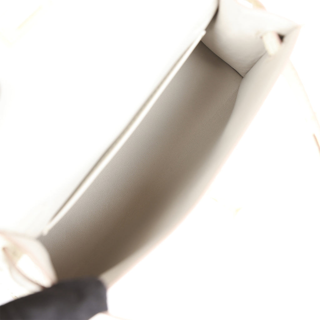 This tiny Kelly, in the Sellier style, is in Beton matte Mississippienis alligator with gold hardware and has tonal stitching, two front straps with front toggle closure, single rolled handle and removable shoulder strap.The interior is lined with Beton leather and has one open pocket on the back wall.Collection: U (2022)Origin: FranceCondition: New and never worn (plastic on hardware)Accompanied by: Hermès box, Hermès dustbag, shoulder strap, shoulder strap dustbag, felt, carebook, CITES and ribbon Measurements: 7.5″ width x 4.5″ height x 2.2″ depth; 2.5″ handle drop, 18.5″ shoulder strap drop