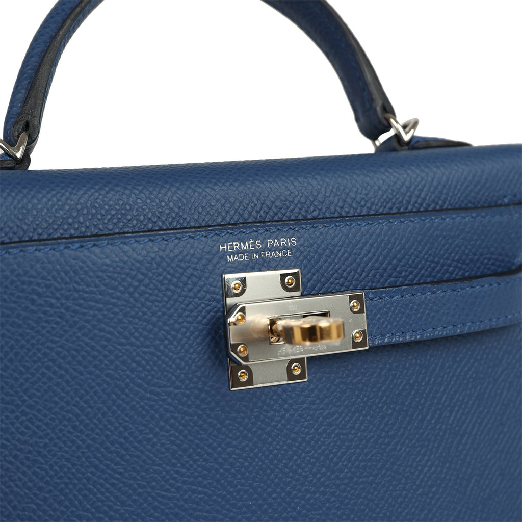 Hermes Kelly Sellier 20 Bleu Tie Epsom Electrum Hardware