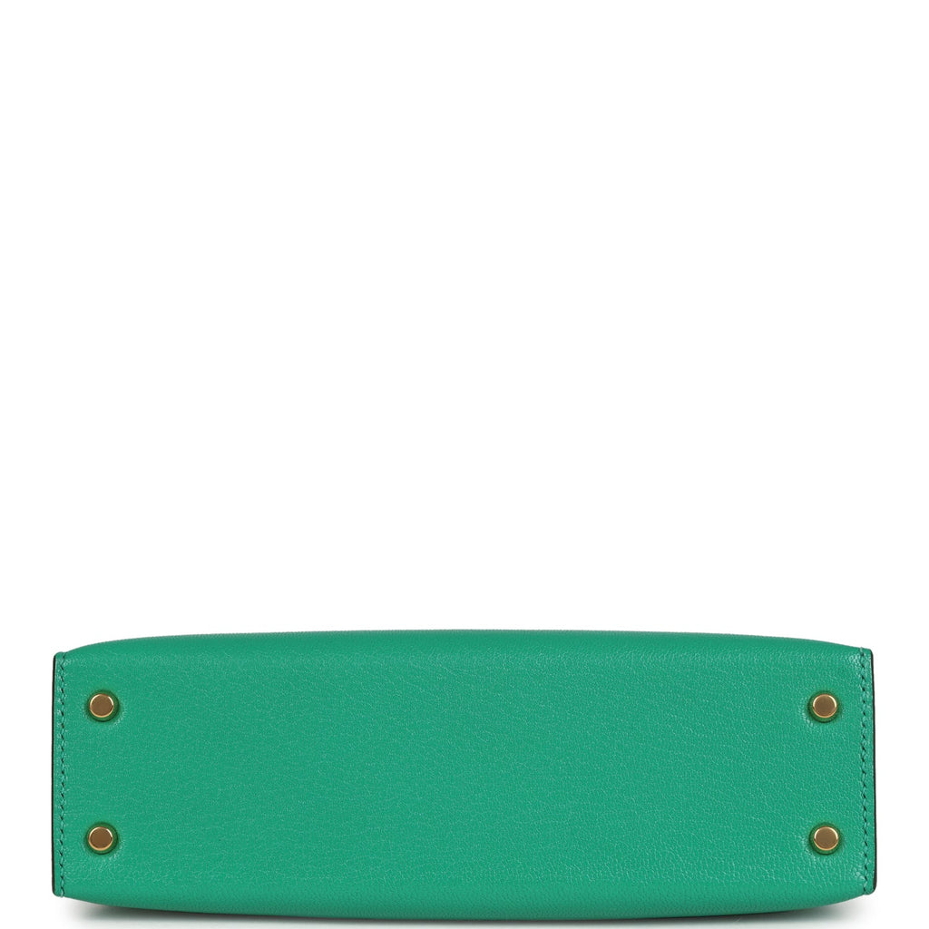 Hermes Kelly Sellier 20 Menthe Chevre Chamkila Gold Hardware Shop for an authentic Hermes Kelly Sellier 20 in Menthe chèvre leather with gold hardware in new and never worn condition at Madison Avenue Couture.
