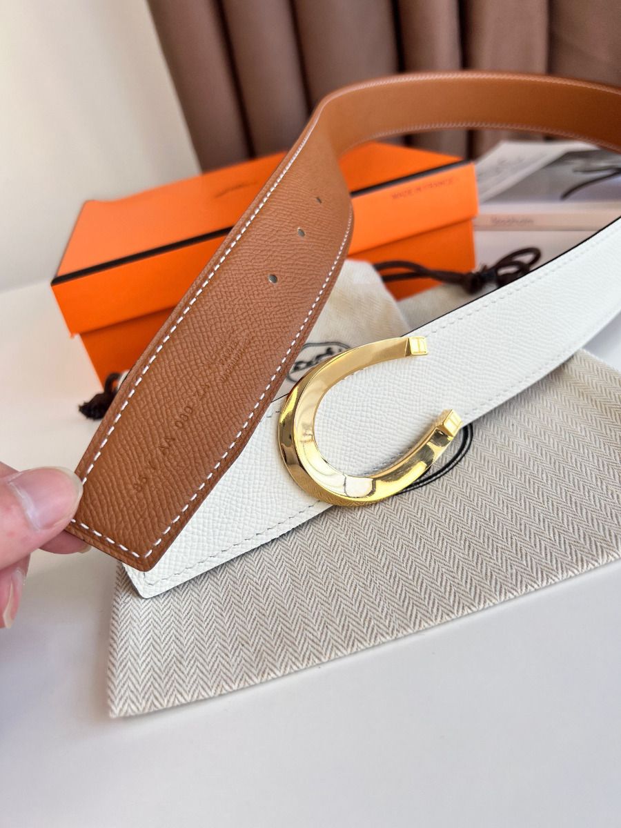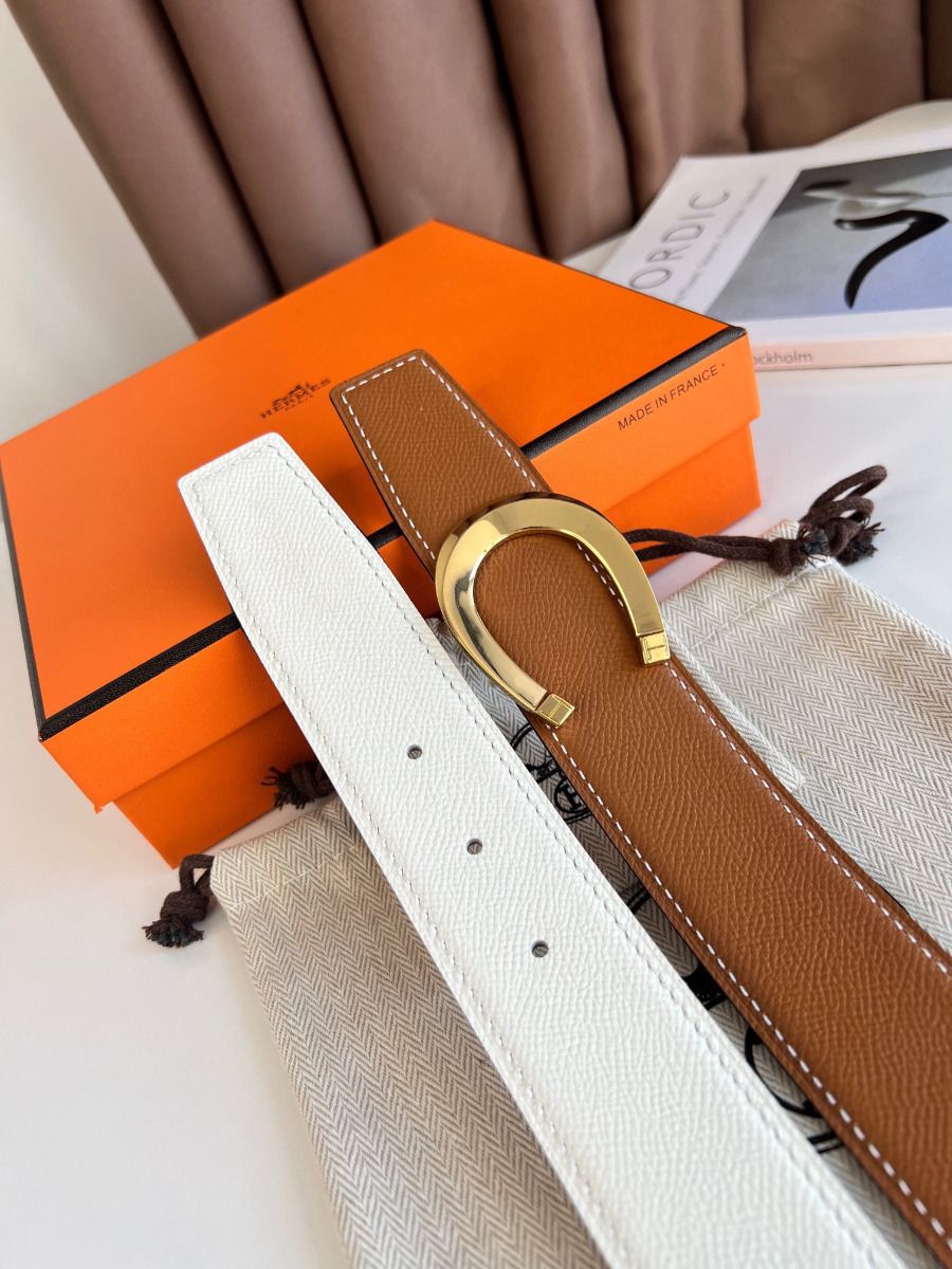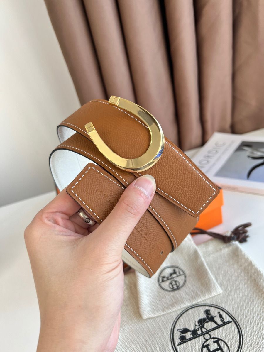 A symbol of luck, the horseshoe takes the shape of a crescent moon that allows happiness to be captured before it escapes. The Luck buckle, available in a range of metallic finishes, reflects the equestrian roots of the Maison.