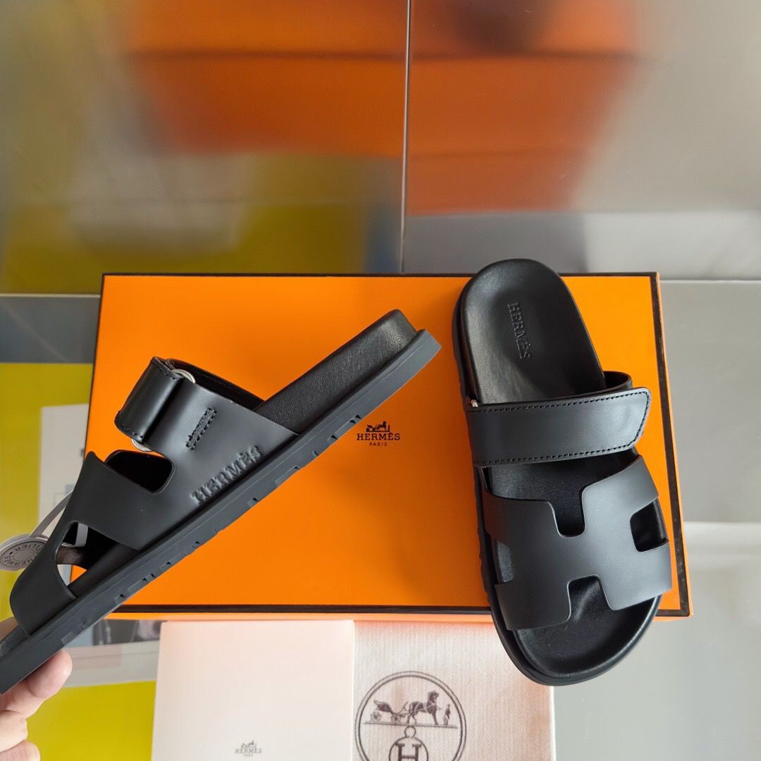 The Hermes Chypre sandal is a luxurious definition of casual urban style. The flats have the signature H strap and a single strap that securely fasten with Velcro for an adjustable fit, and the soles are finished in rubber. The sleek design is meant to look great on your feet as well as guide your steps with comfort.