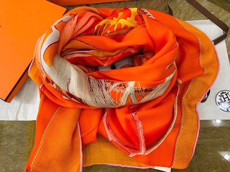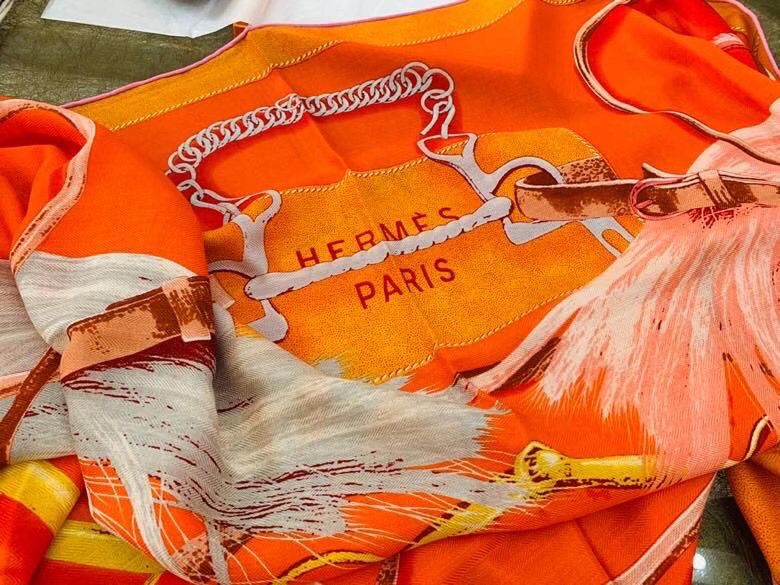 Be the first to review “Hermes Orange Projets Carres Shawl 140”