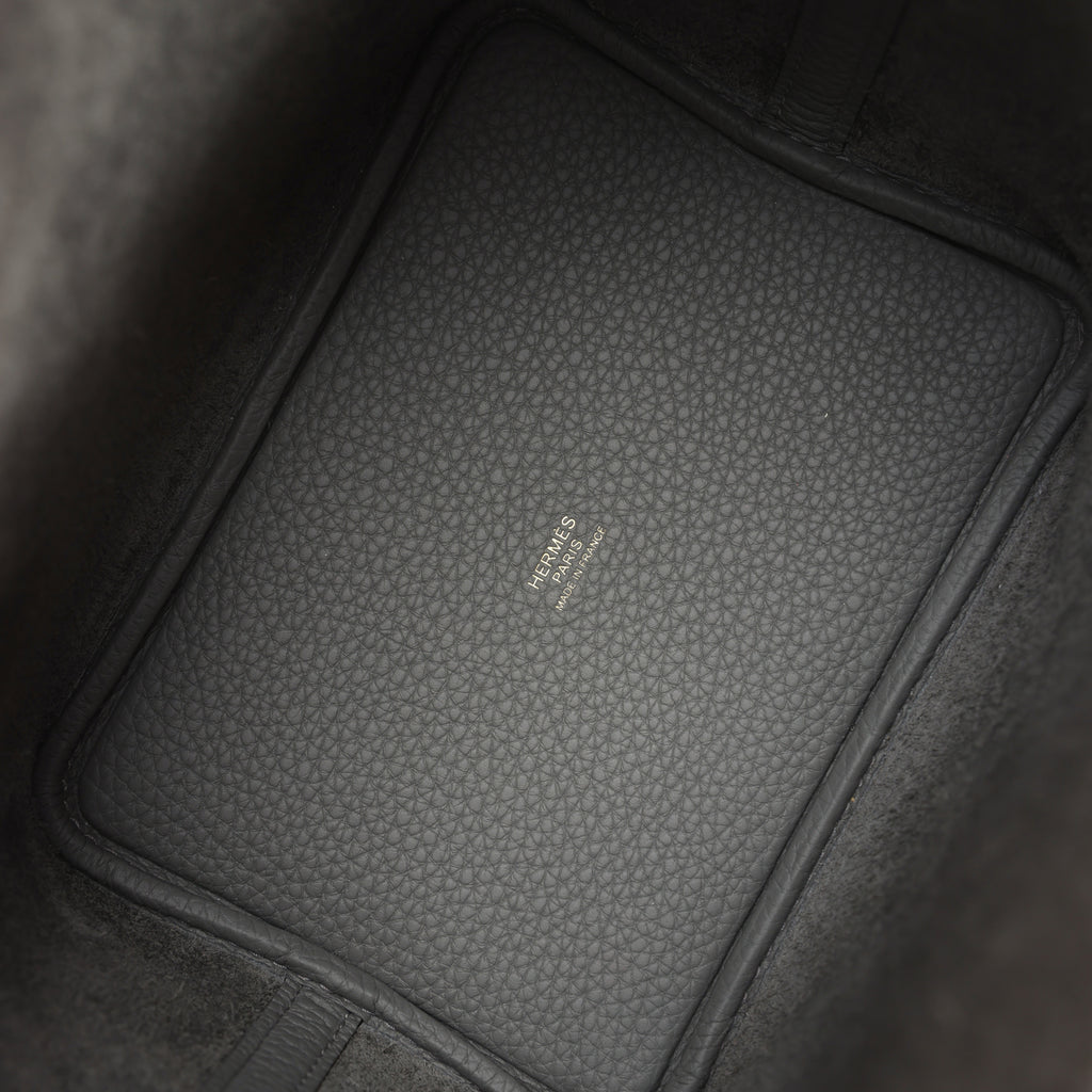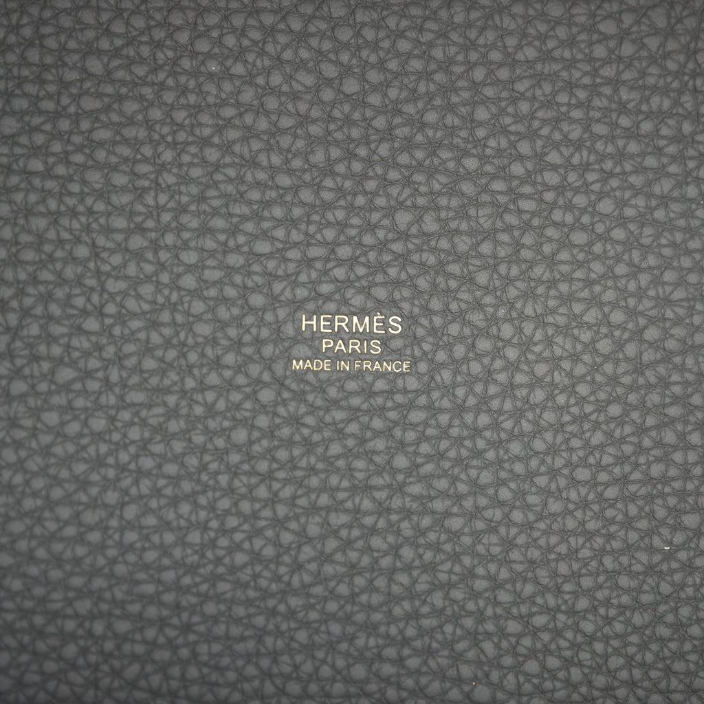 This Picotin is in Gris Meyer clemence leather with gold hardware and has tonal stitching with two top handles.The interior is lined with Gris Meyer natural suede leather, no interior pockets and has a pull through closure secured by padlock.Collection: W (2024)Origin: FranceCondition: New and never worn (plastic on hardware)Accompanied by: Hermes box, Hermes dustbag, lock, two keys, carebook and ribbonMeasurements: 7″ width x 7.5″ height x 5.5″ depth; 5.5″ handles
