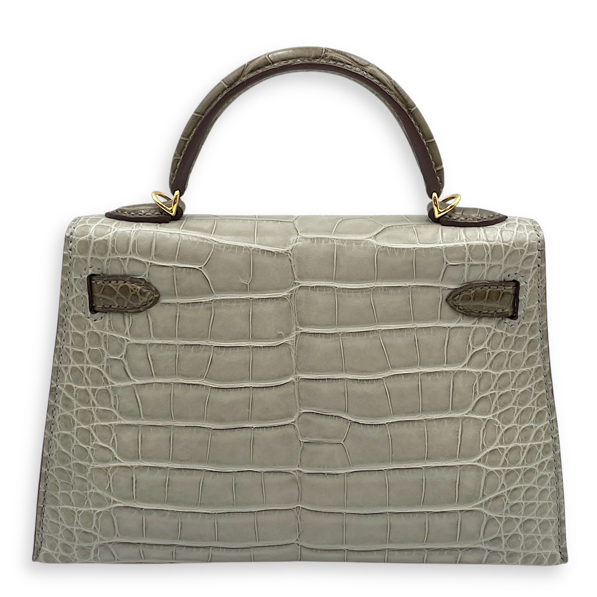 HSS Sellier Kelly 20 Gris Perle/Gris Elephant in Matte Alligator, Gold hardware