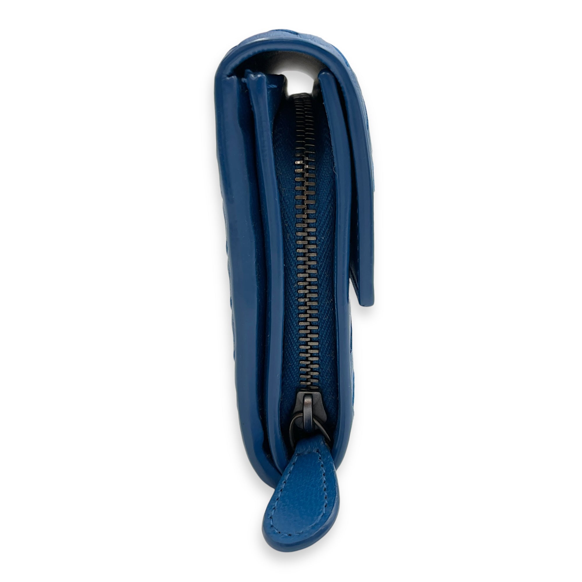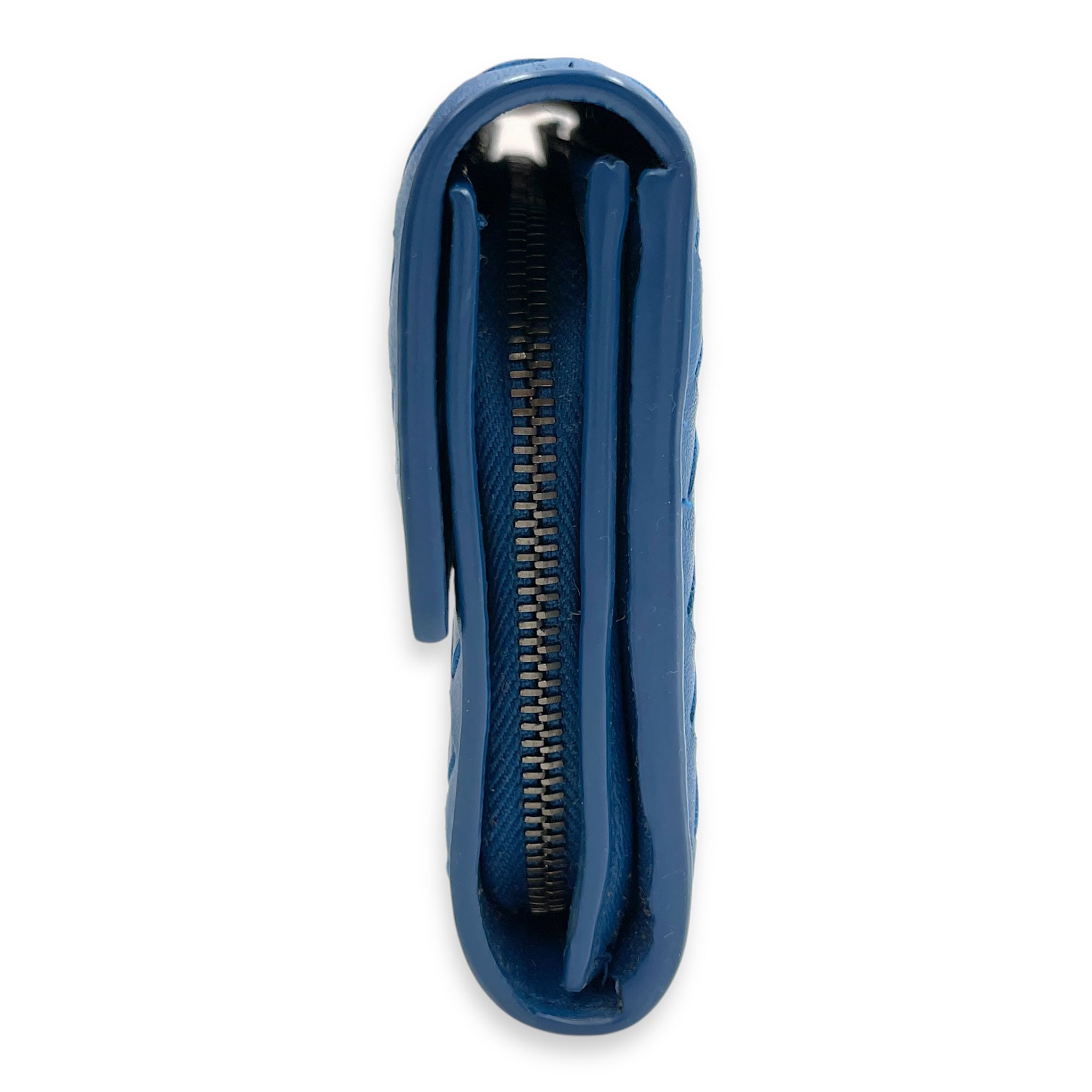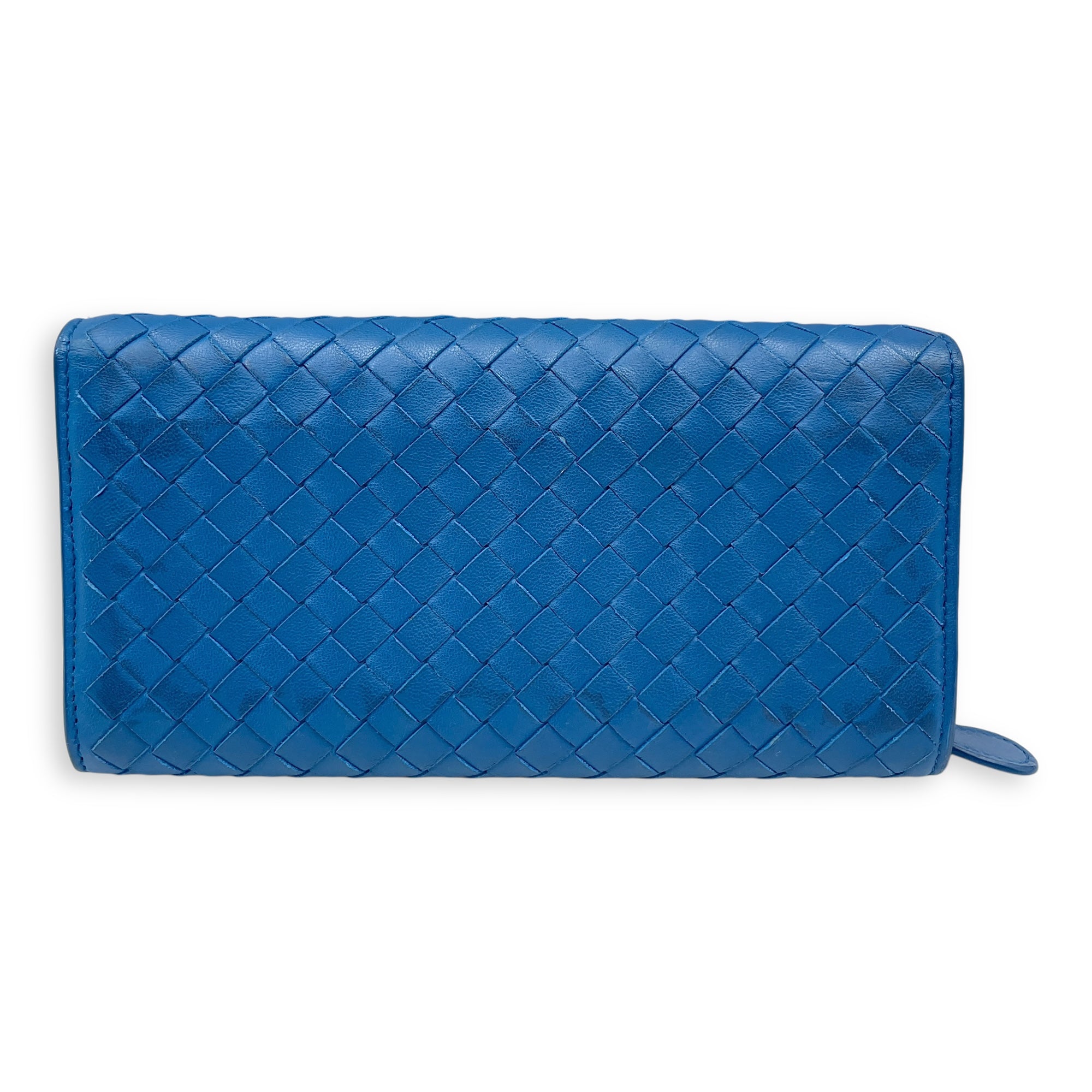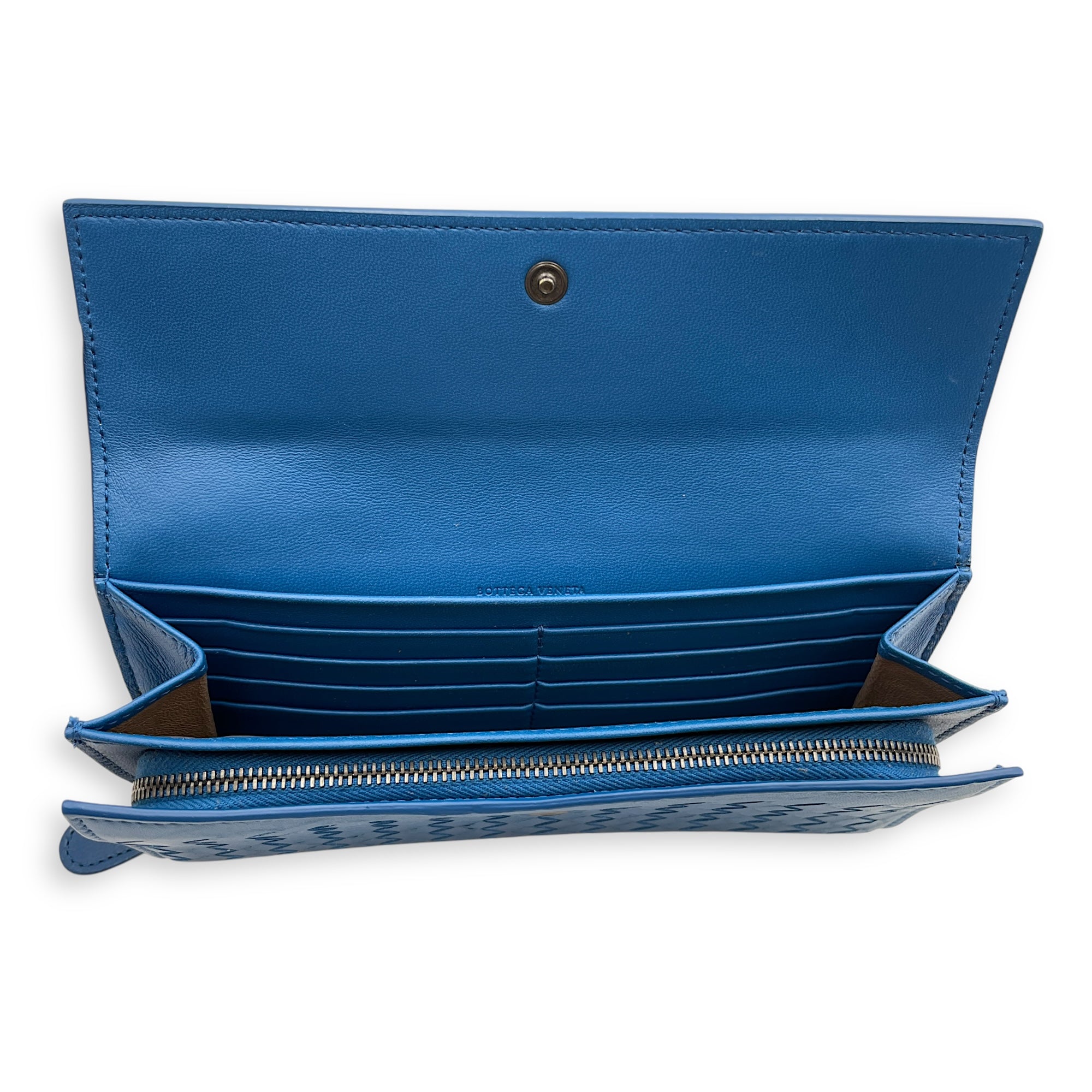Intrecciato Long Blue Wallet in Nappa Leather, Silver hardware