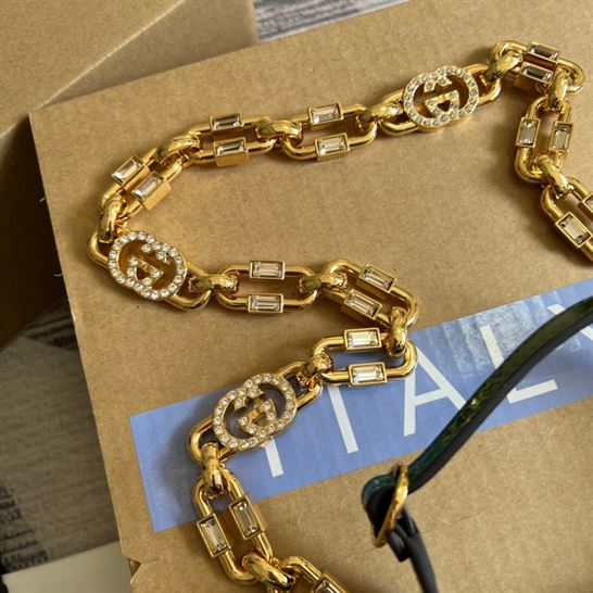 Jackie 1961 mini shoulder bag has inserts contain leather made through an alternative metal or chrome free tanning process. Detachable chain link shoulder strap and pin-buckle carry handle.