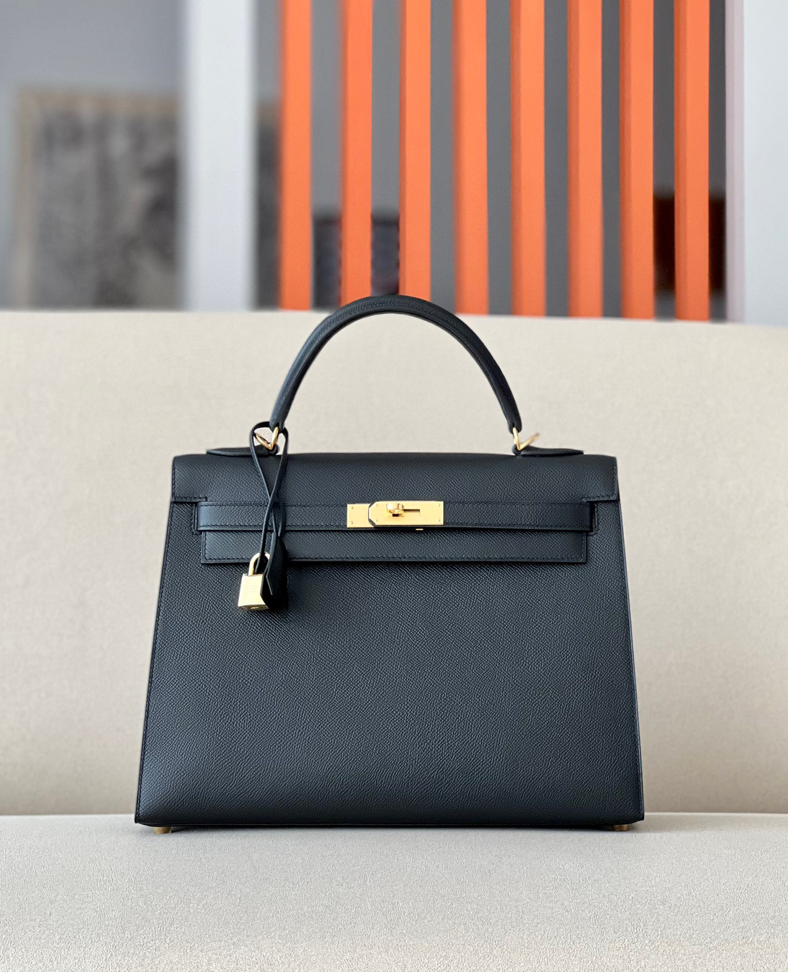 Kelly 32 Epsom Noir(89) Gold Hardware