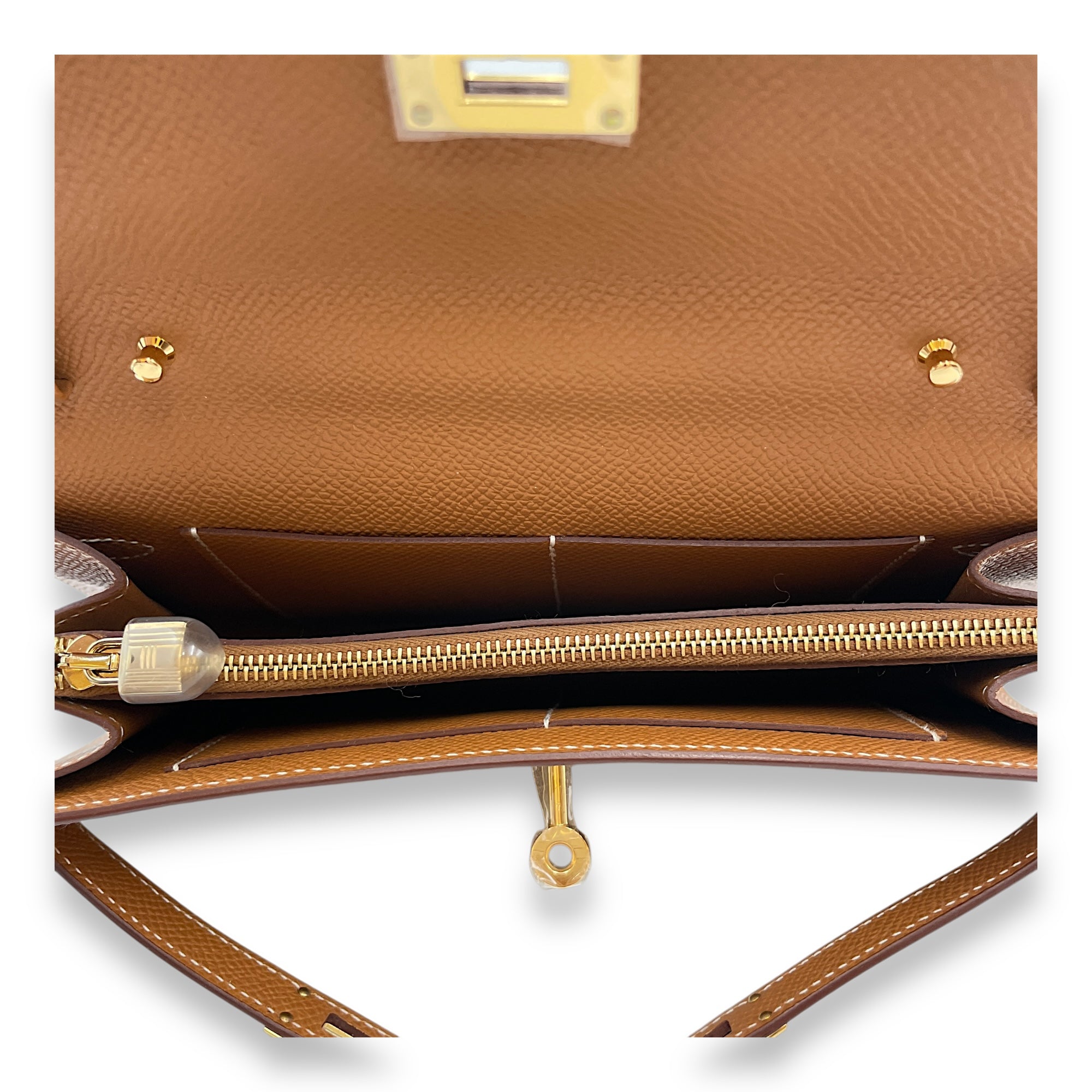 Kelly To Go Gold Crossbody Bag in Epsom, Gold hardware