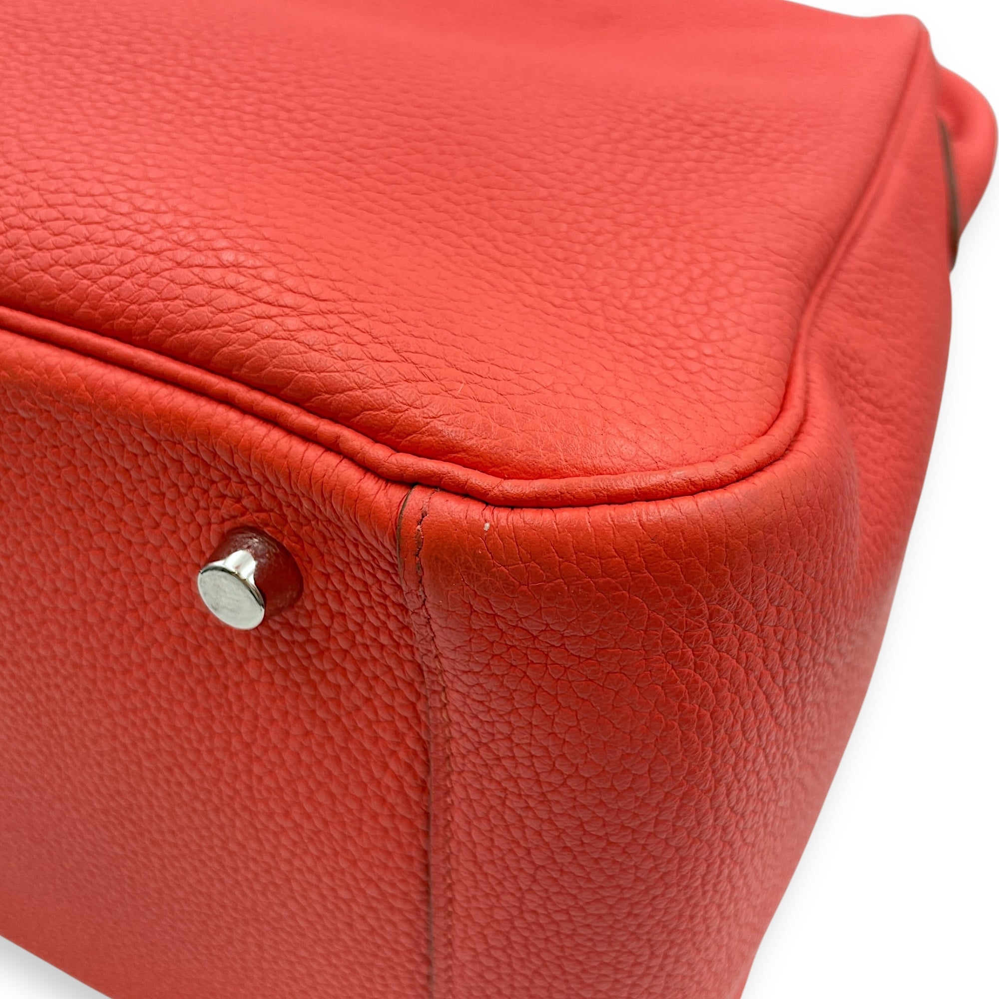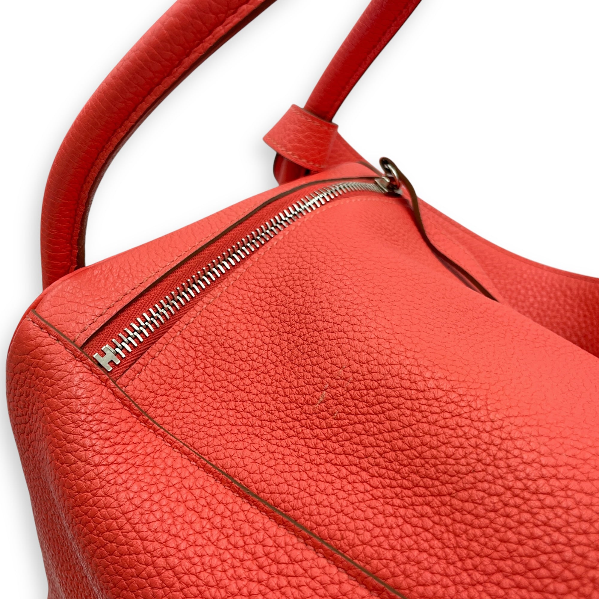 – Zipper / Hardware: Scratches and marks on the leather – Compartments: Storage smell and marks on the interior