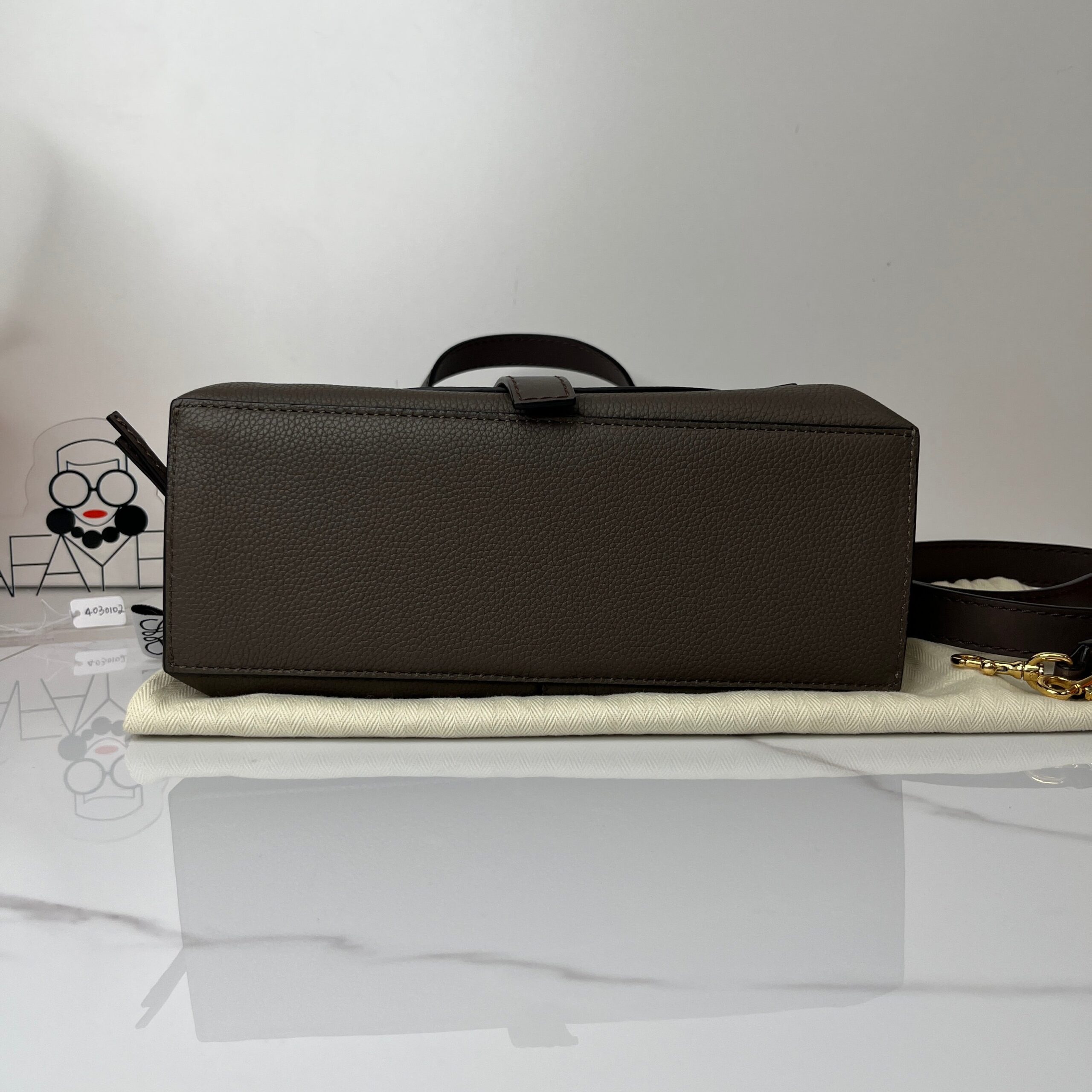 Named for the signature side latched pin and knotted belt closure, the Gate bag features uniquely hand-crafted detailing. This version features double top handles, removable, adjustable shoulder strap and an embossed logo detail. Compartments with slip pockets and zip pocket inside.